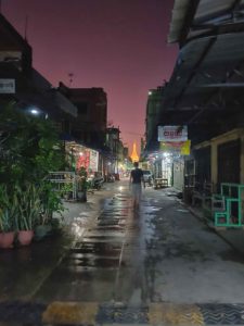 Retour tranquille à la maison, chacun à son hôtel pour se débarbouiller un peu, et on se donne rendez-vous au Window Café (toujours le même) avec Sara, Juan et Sylvie une heure plus tard. J’en profite pour aller faire un petit tour à la pagode repérée la veille, et je suis bien récompensée : le lieu est calme, magnifiquement éclairé de nuit, avec des locaux qui viennent prier, ou se reposer dans l’enceinte du temple. Je me sens un peu hors du temps, c’est magique.