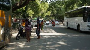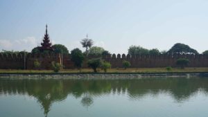 Camille a fait son petit repérage la veille : on va faire la zone des temples au nord-est du Grand Palais. Pour ceux qui iront voir la carte de Mandalay, on croit au début que c’est assez petit à cause du gros bâtiment carré au milieu, mais c’est un leurre : il s’agit en fait d’une immense enceinte entourée d’eau qui renferme certes le Grand Palais, mais aussi pléthore de bâtiments militaires, encore en usage.