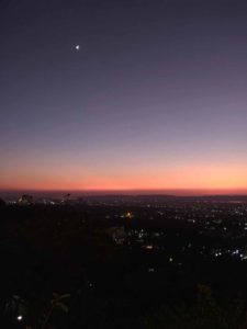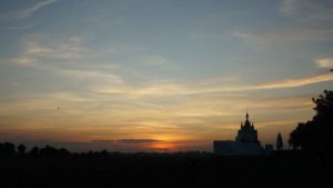 Bref, c’était quand même super chouette 🙂 en redescendant, on se pose un peu sous les arcades du temple « d’en-dessous » et le ciel s’enflamme, c’est magnifique. Puis on continue, et on est rattrapés par un groupe de moines, plus précisément une classe d’anglais de moines, qui entame la conversation 😀 Apparemment, Mandalay Hill est une destination systématique pour aller s’entraîner à l’anglais avec les touristes du moment 😊 c’est très sympa aussi, et on passe nos contacts pour se recroiser plus tard.