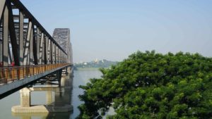 Comme on est du côté opposé par rapport aux temples, on se dit qu’on va passer par le gros carré et voir le palais… Mais non. On pédale, on pédale (c’est beau et même si la conduite au Myanmar est un joyeux bordel, tout repose sur la politesse et le fait de laisser passer l’autre, quitte à ce que les deux s’arrêtent 😊), on arrive au pont ouest…