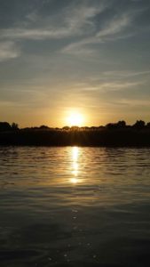 On reprend le bateau, le soleil sur le point de se coucher rend la scène magnifique. Puis Nyi Nyi nous dit qu’il y a encore peut-être moyen de profiter du U Bein Bridge, et on part à toute blinde (c’est quand même à 20 min de route). Cette fois, ce n’est pas la même histoire niveau conduite 😅