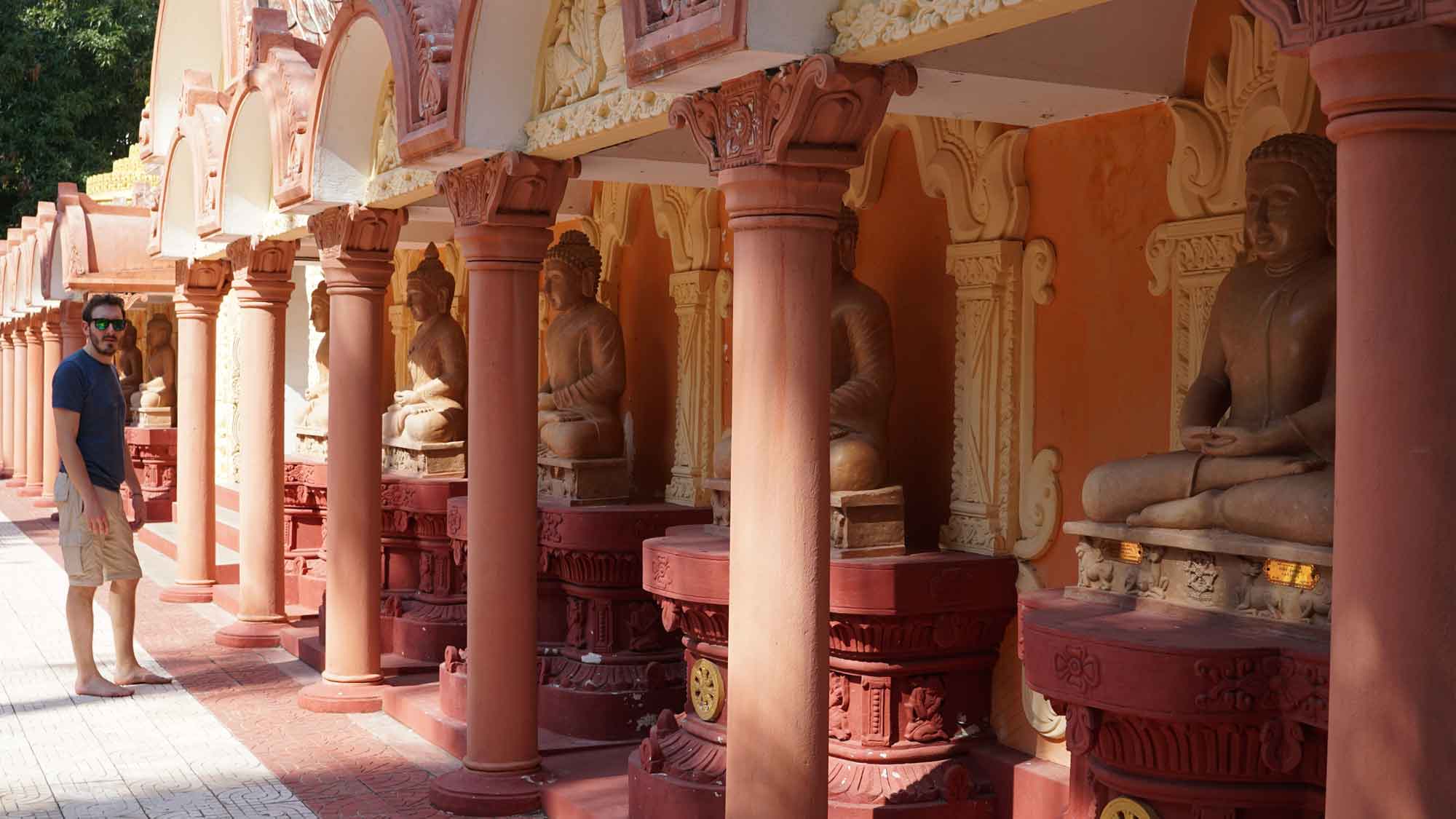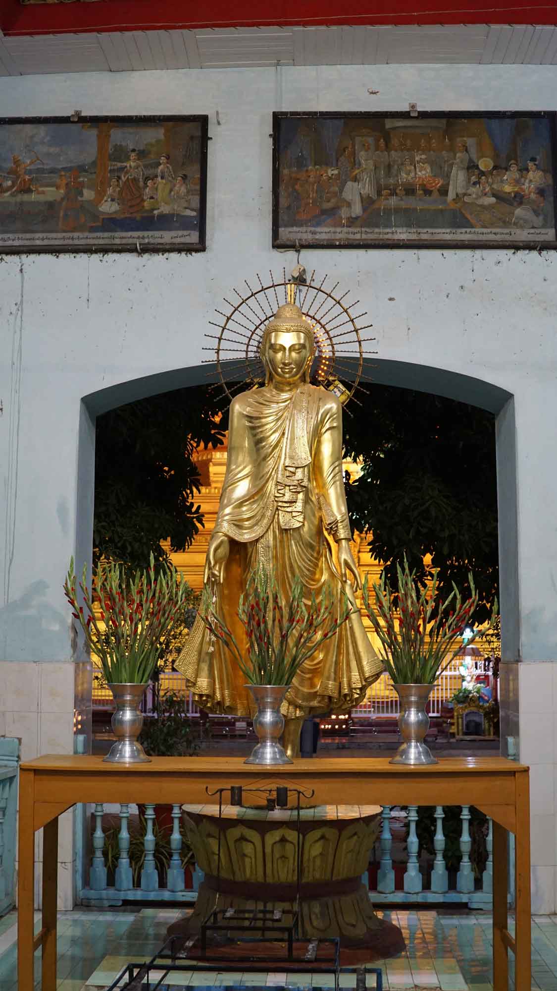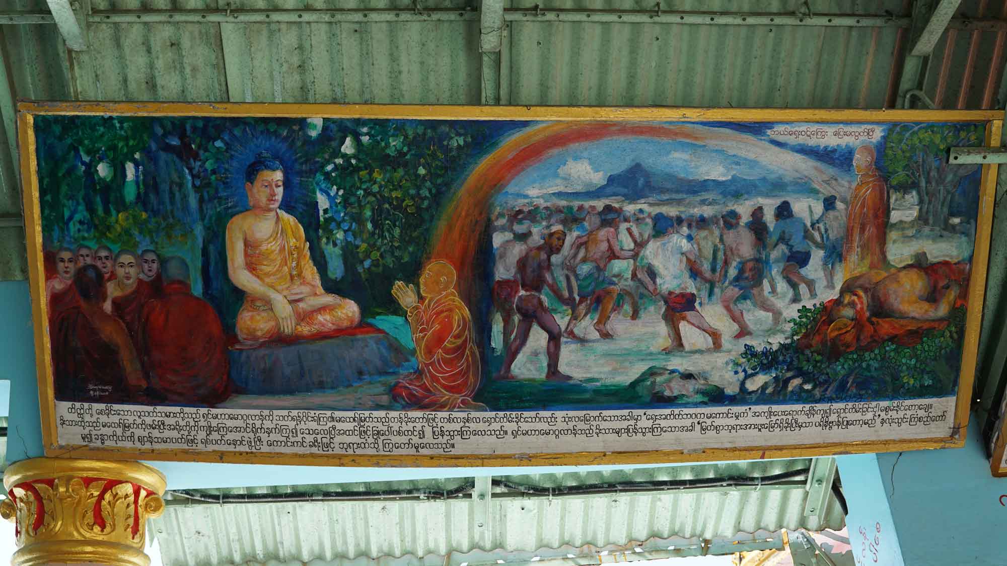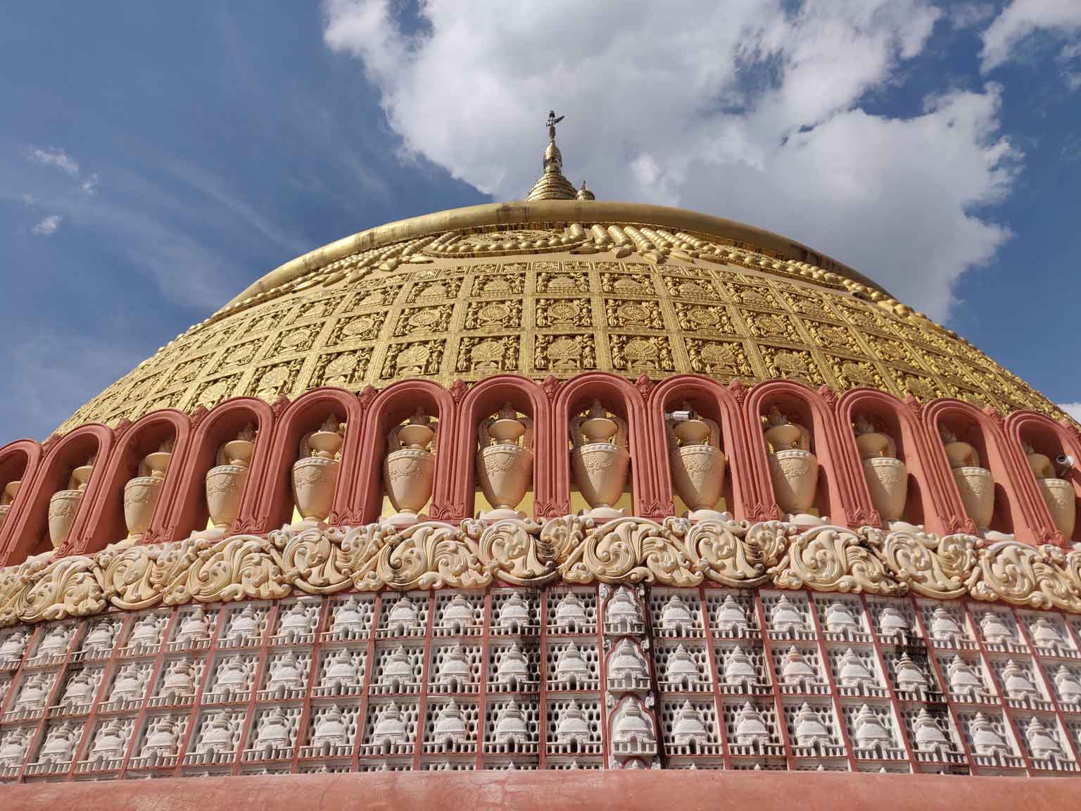 Puis on rejoint Nyi Nyi qui nous emmène à la Buddha University où, si j’ai bien compris, les gens viennent prendre des cours sur le bouddhisme et/ou passer leurs examens écrits de moines. Autour de l’immense coupole dorée, une myriades de bouddhas, venant de presque tous les pays d’Asie ! Ça nous fait une belle petite mosaïque de photos 🙂