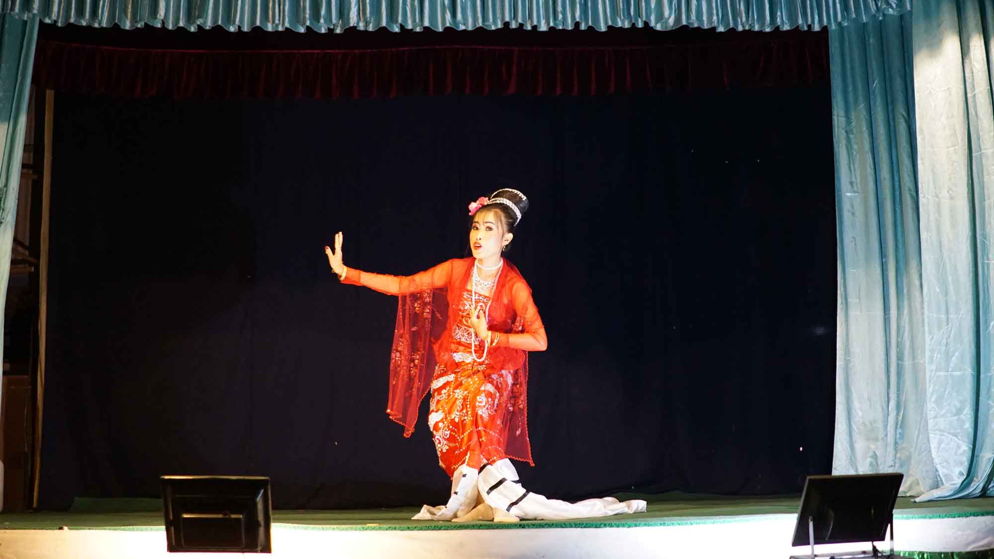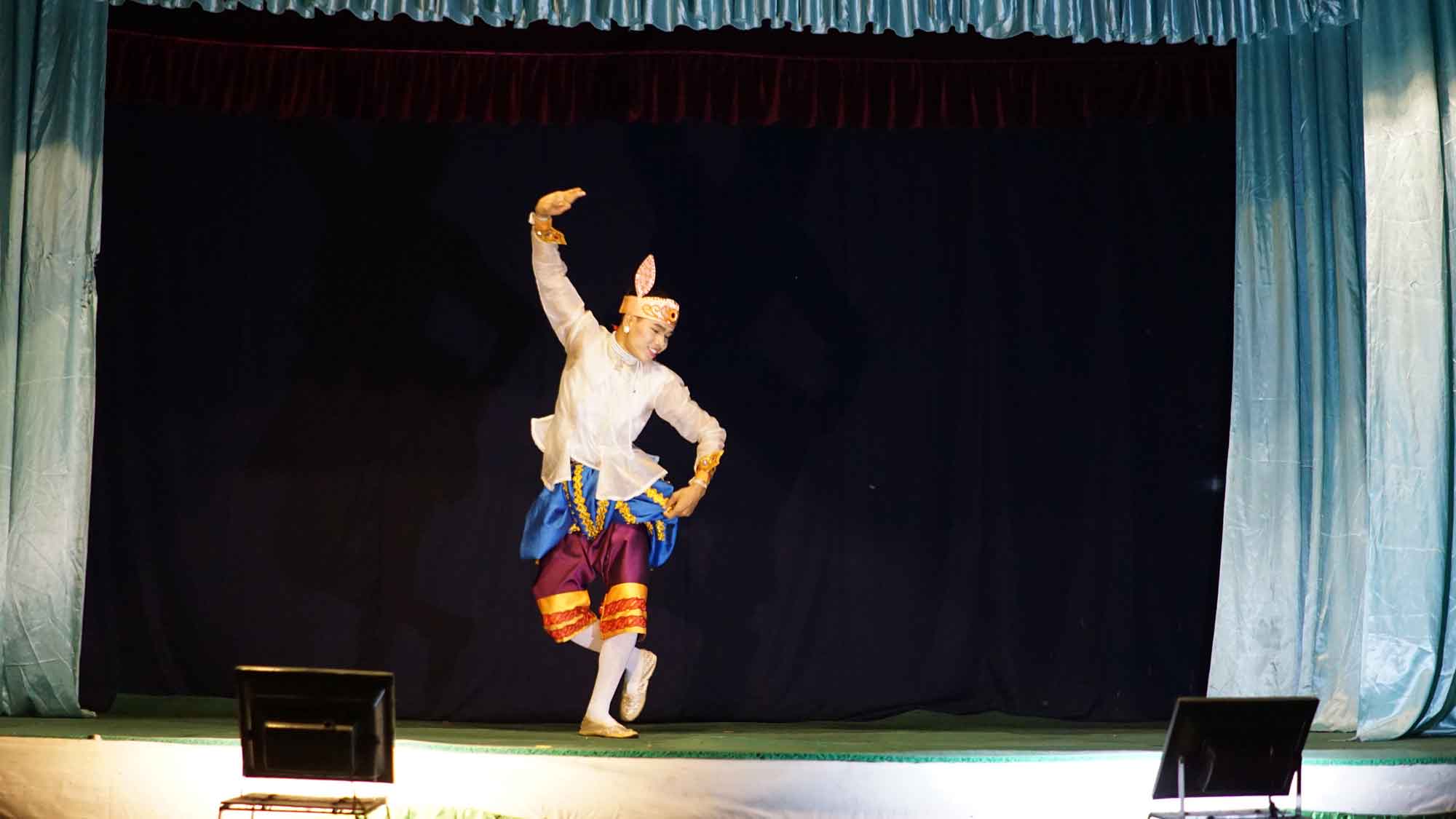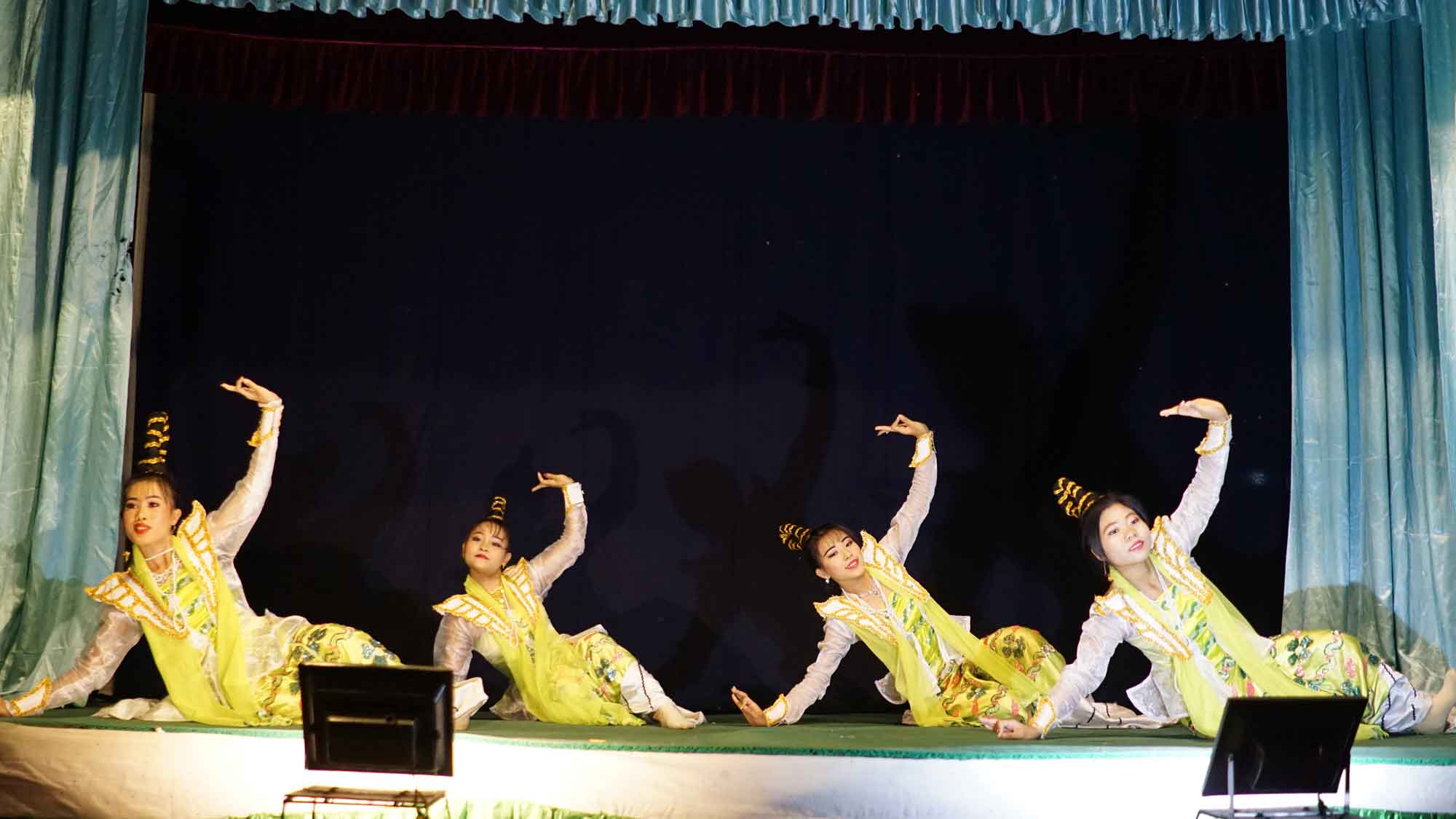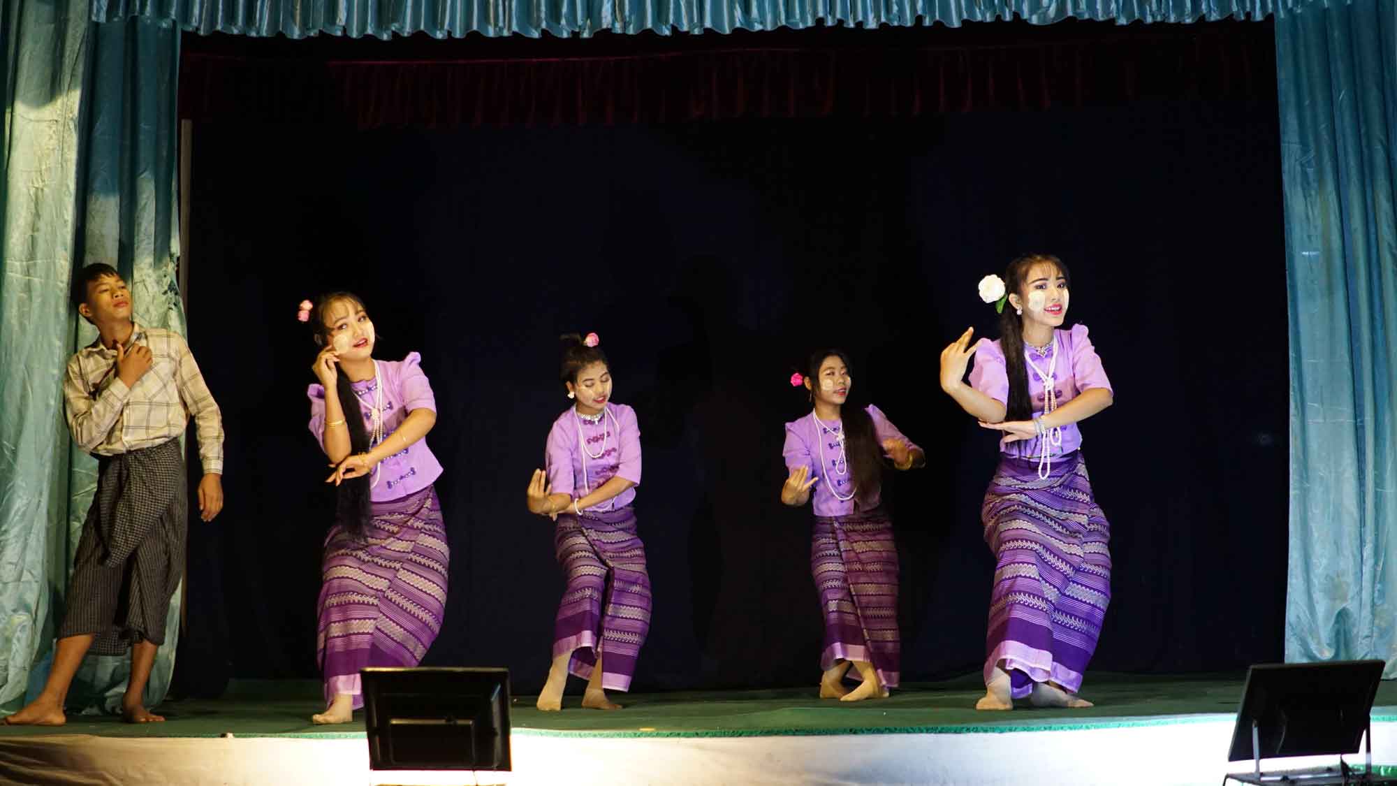 La conversation a bien entamé le temps de rab’ qu’on avait pour dîner, et on se dépêche de reprendre les vélos (oups il fait nuit, on aurait dû prendre les lampes frontales…) pour aller chercher de quoi manger à côté du Mintha Theater, où on a des places pour un spectacle de danse et chant traditionnels par les élèves de l’école du même nom, à 20h. On trouve un petit restau cool, (on était très curieux à l’idée de tester le Nazi Style Rice, mais ils n’en avaient plus 😔), puis on file au théâtre. On est six, installés sur des chaises en plastique, en extérieur (il fait tout le temps beau de toute façon !), et c’est génial. Trois musiciens se relaient au xylophone, percussions style tablas et un instrument traditionnel (une petite cymbale dans une main et une sorte de clave en bois dans une autre) pendant que les danseurs-chanteurs-acteurs dans de superbes costumes défilent sur la scène. Chaque danse est présentée en anglais en amont par le responsable, c’est super agréable, les étudiants (11 à 19 ans) donnent le meilleur d’eux-mêmes, et on profite ! À la fin ils viennent nous voir pour discuter et prendre une photo ensemble, le sourire jusqu’aux oreilles. Camille discute avec le responsable du fonctionnement de l’école, et se met d’accord pour que venir assister à leurs cours le surlendemain matin. Camille est aux anges 😊