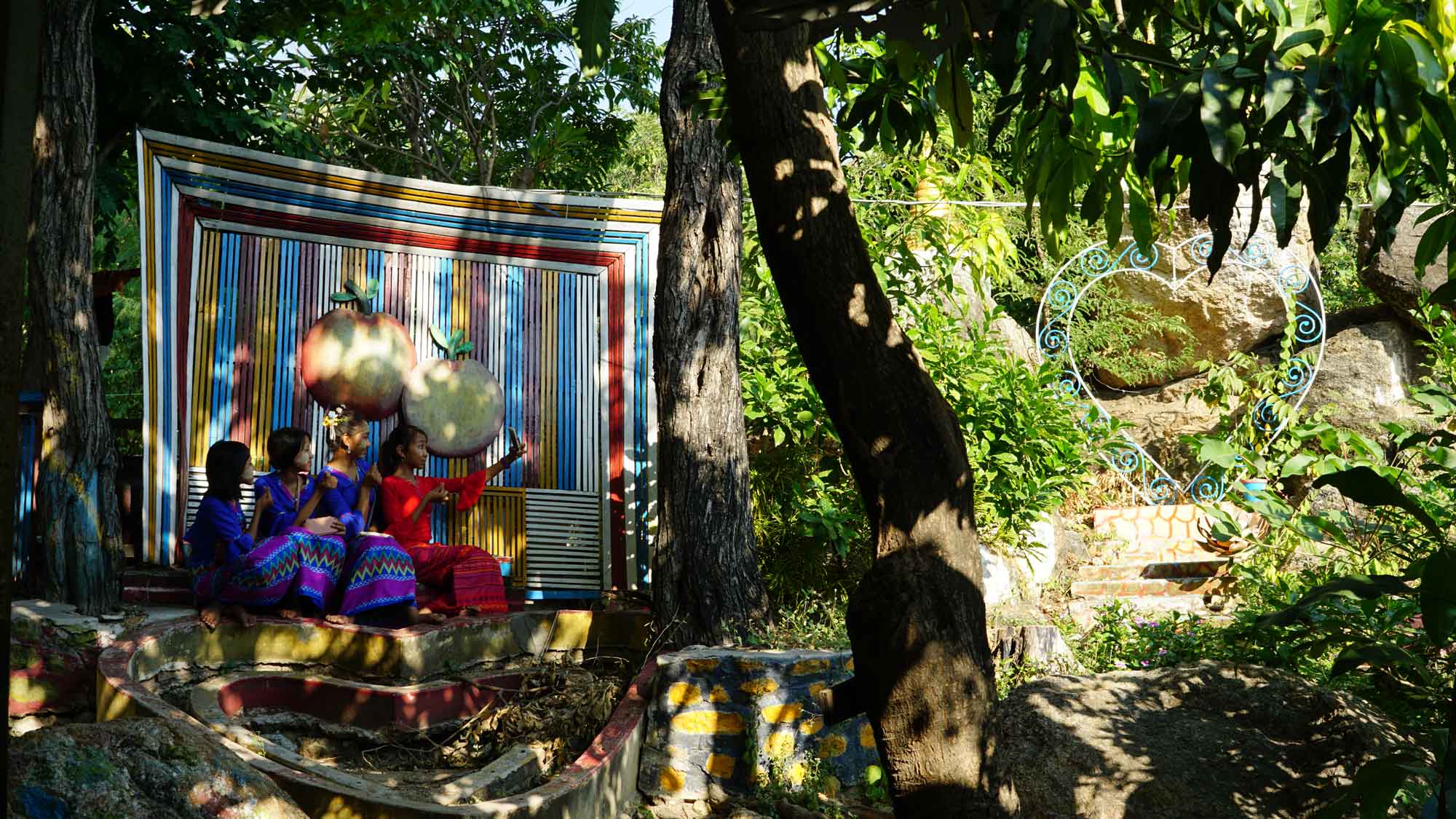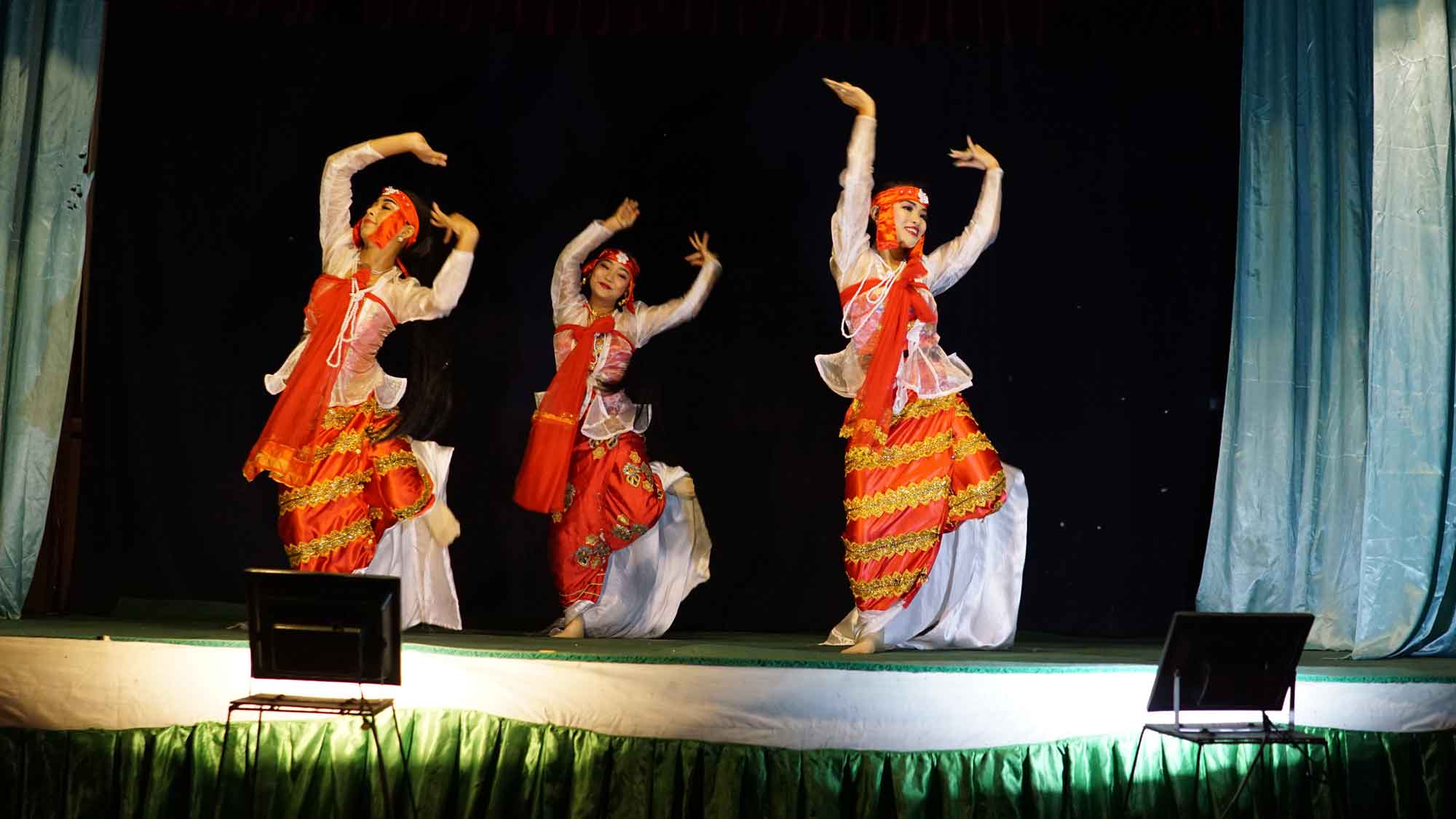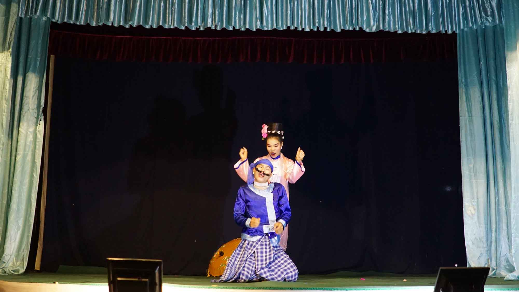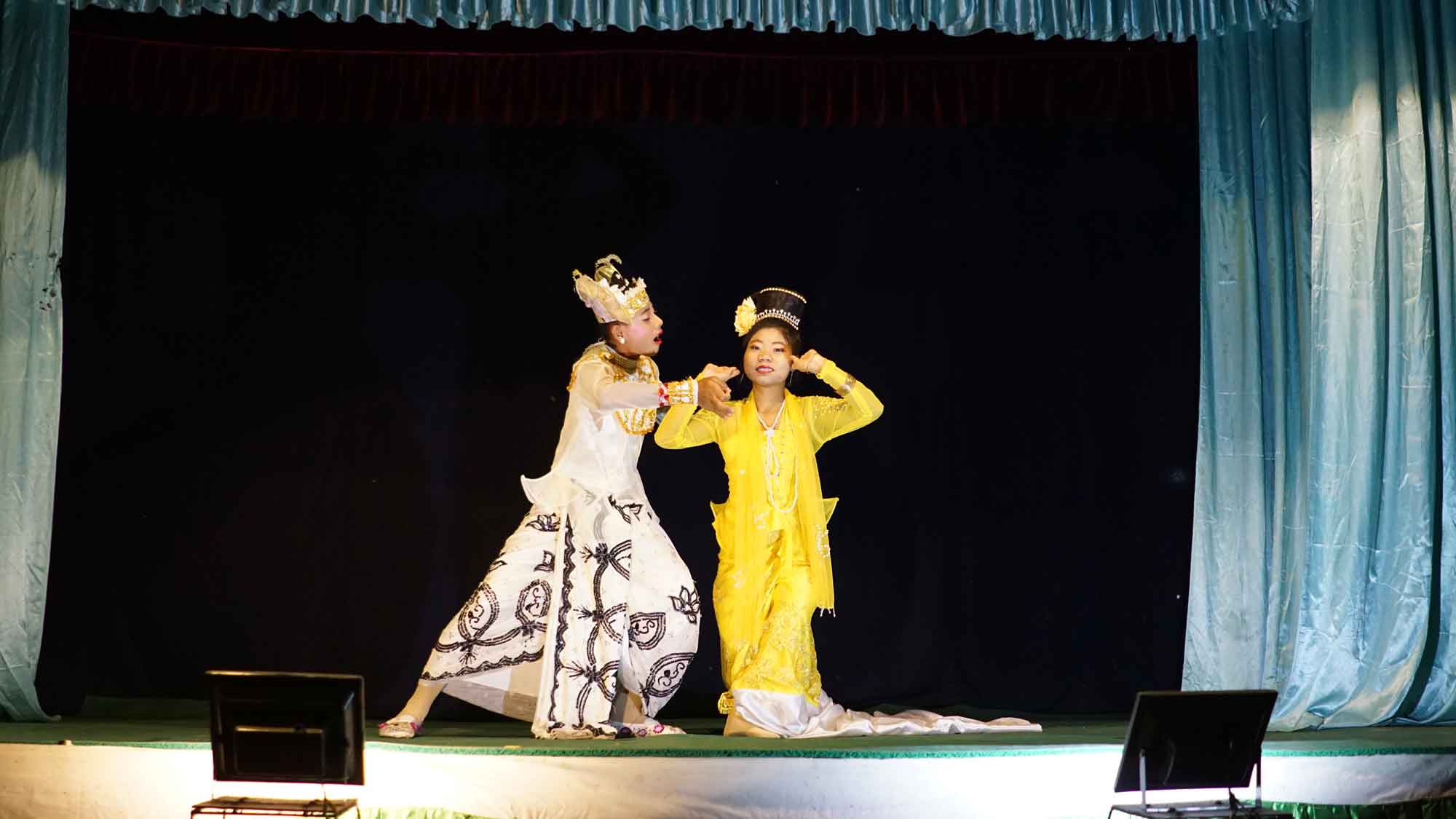 La conversation a bien entamé le temps de rab’ qu’on avait pour dîner, et on se dépêche de reprendre les vélos (oups il fait nuit, on aurait dû prendre les lampes frontales…) pour aller chercher de quoi manger à côté du Mintha Theater, où on a des places pour un spectacle de danse et chant traditionnels par les élèves de l’école du même nom, à 20h. On trouve un petit restau cool, (on était très curieux à l’idée de tester le Nazi Style Rice, mais ils n’en avaient plus 😔), puis on file au théâtre. On est six, installés sur des chaises en plastique, en extérieur (il fait tout le temps beau de toute façon !), et c’est génial. Trois musiciens se relaient au xylophone, percussions style tablas et un instrument traditionnel (une petite cymbale dans une main et une sorte de clave en bois dans une autre) pendant que les danseurs-chanteurs-acteurs dans de superbes costumes défilent sur la scène. Chaque danse est présentée en anglais en amont par le responsable, c’est super agréable, les étudiants (11 à 19 ans) donnent le meilleur d’eux-mêmes, et on profite ! À la fin ils viennent nous voir pour discuter et prendre une photo ensemble, le sourire jusqu’aux oreilles. Camille discute avec le responsable du fonctionnement de l’école, et se met d’accord pour que venir assister à leurs cours le surlendemain matin. Camille est aux anges 😊