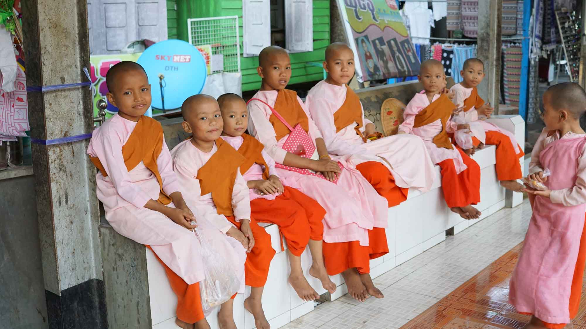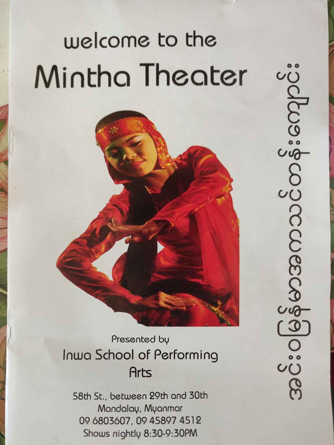 Pupun (je ne sais pas si ça s’écrit comme ça) une des aînées de 17 ans, discute bien avec moi, et m’invite à manger avec eux le midi au bâtiment qui leur sert aussi de dortoir. Les quatorze élèves de l’école viennent tous de la campagne de la région, et sont recrutés suite à des auditions quand la troupe donne des représentations hors de Mandalay pendant les deux mois d’été. Ils sont logés (en dortoir donc) et nourris à deux minutes à pied du théâtre, et alternent entre une demi-journée de cours « classiques » à l’école du quartier et une demi-journée de cours au théâtre : danse, musique (chant, petites percussions et instruments d’accompagnement dont xylophone et piano) et jeu d’acteur. Ils ont plus d’une centaine de morceaux, chants et danses traditionnels à connaître pour pouvoir plus tard devenir artistes professionnels et/ou professeurs. Le repas est très bon même si je fais bien attention à ce que je mange (« Spicy ? No spicy? Really really no spicy? »), et je rencontre la directrice de l’association qui me raconte comment la structure fonctionne. Je leur montre une Circle Song avec les percussions corporelles, c’est un peu trop compliqué mais on s’amuse bien ! Puis la professeure de chant, plus âgée, qui ne parle pas un mot d’anglais mais qui fait des bonnes blagues et avec qui on parle avec les mains, me fait chanter un chant traditionnel birman en répétant après elle. Les sonorités ne sont pas évidentes mais le public est bienveillant, et on s’applaudit tous à profusion. Je finis en leur chantant les Feuilles Mortes (quelle originalité, je sais). Le moment humain est très beau, on est tous heureux d’être ensemble, et j’ai du mal à partir. J’espère qu’on pourra se recroiser, peut-être un jour les faire venir danser en France ! Si l’asso vous intéresse, ils ont un site, et vous pouvez même soutenir les élèves avec des dons ou des bourses d’un an : Mintha Theater et la Inwa School of Arts