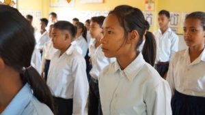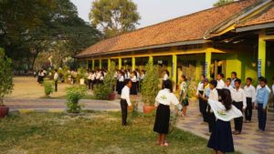Le réveil à 5h30 est un peu dur, mais il faut bien ça pour être prête à 6h30 🙂. M. Chantha, représentant de l’association qui joue le rôle d’intermédiaire et de traducteur, passe me prendre en tuktuk et me parle un peu de l’association sur le chemin de l’école.