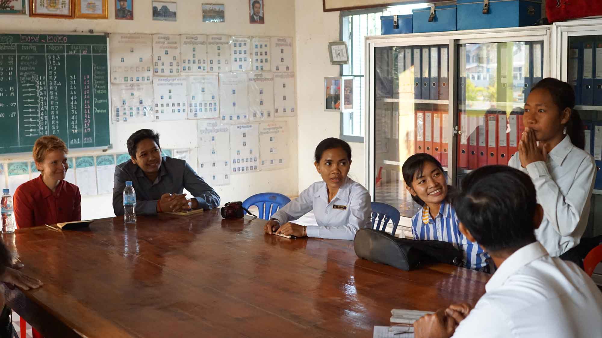 En arrivant, je rencontre le photographe de Bandos Komar venu prendre films et photos pour documenter l’intervention, ainsi qu’une bénévole de l’association et un responsable de son action à Pursat, où une vingtaine d’écoles sont soutenues par leur programme d’aide à l’éducation. Puis nous sommes présentés au directeur, la bibliothécaire ainsi qu’une des neuf professeurs, en même temps que la petite fille et sa mère. La rencontre est un peu formelle par rapport à ce à quoi je m’attendais et elle avait l’air très timide, mais c’est déjà ça. ☺️