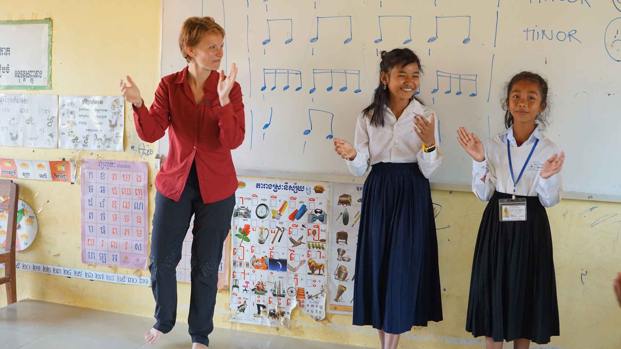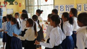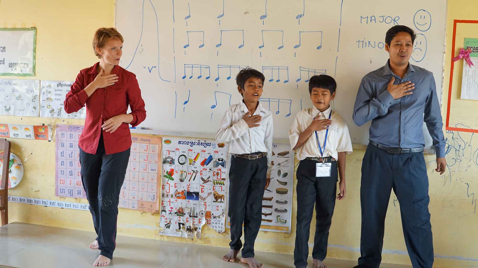 À la fin de chaque séance, je leur ai chanté une chanson en français, puis ils en ont chanté une en khmer, d’abord en groupe, puis tout seul pour les volontaires. C’était magique d’entendre toutes ces chansons traditionnelles, même si les chants en groupe m’ont donné une bonne petite migraine à la fin de la journée (soixante enfants qui chantent à plein poumons, ça fait un sacré volume 😁).