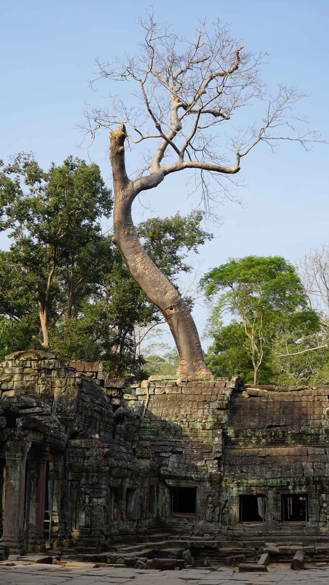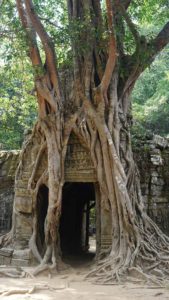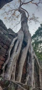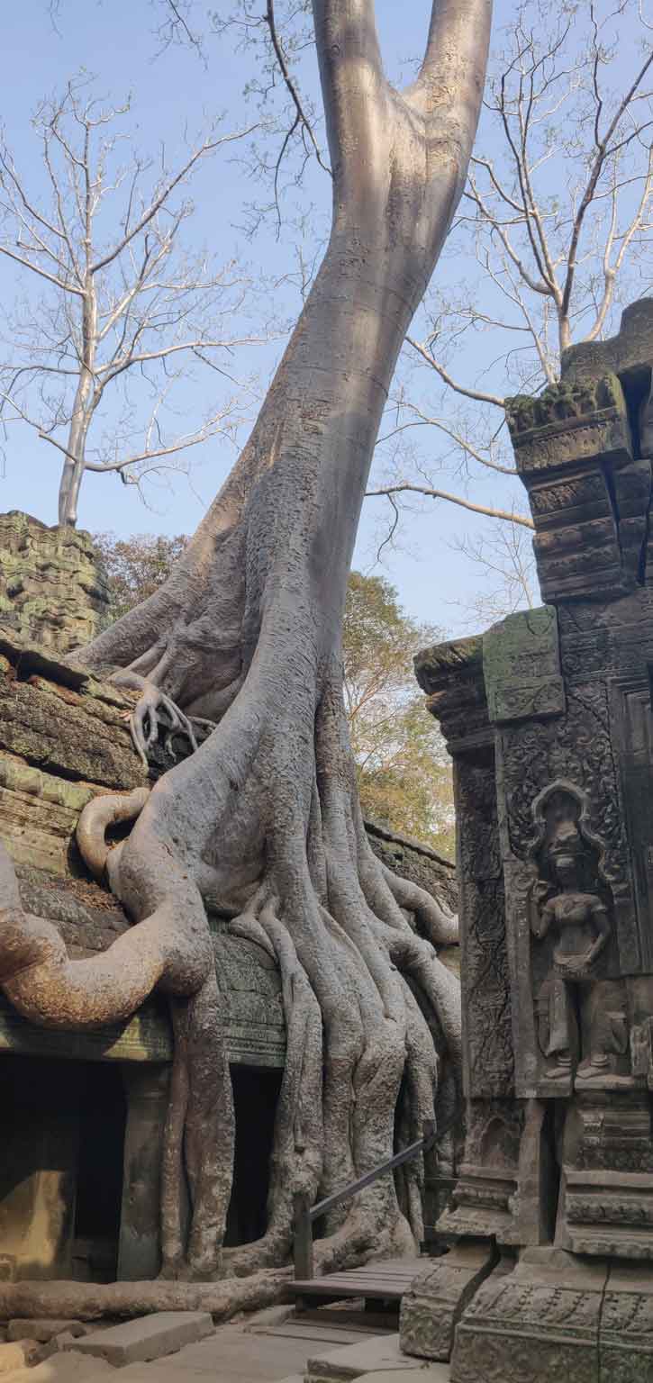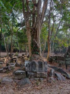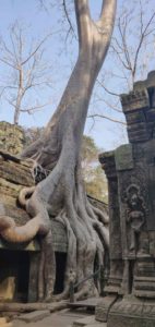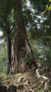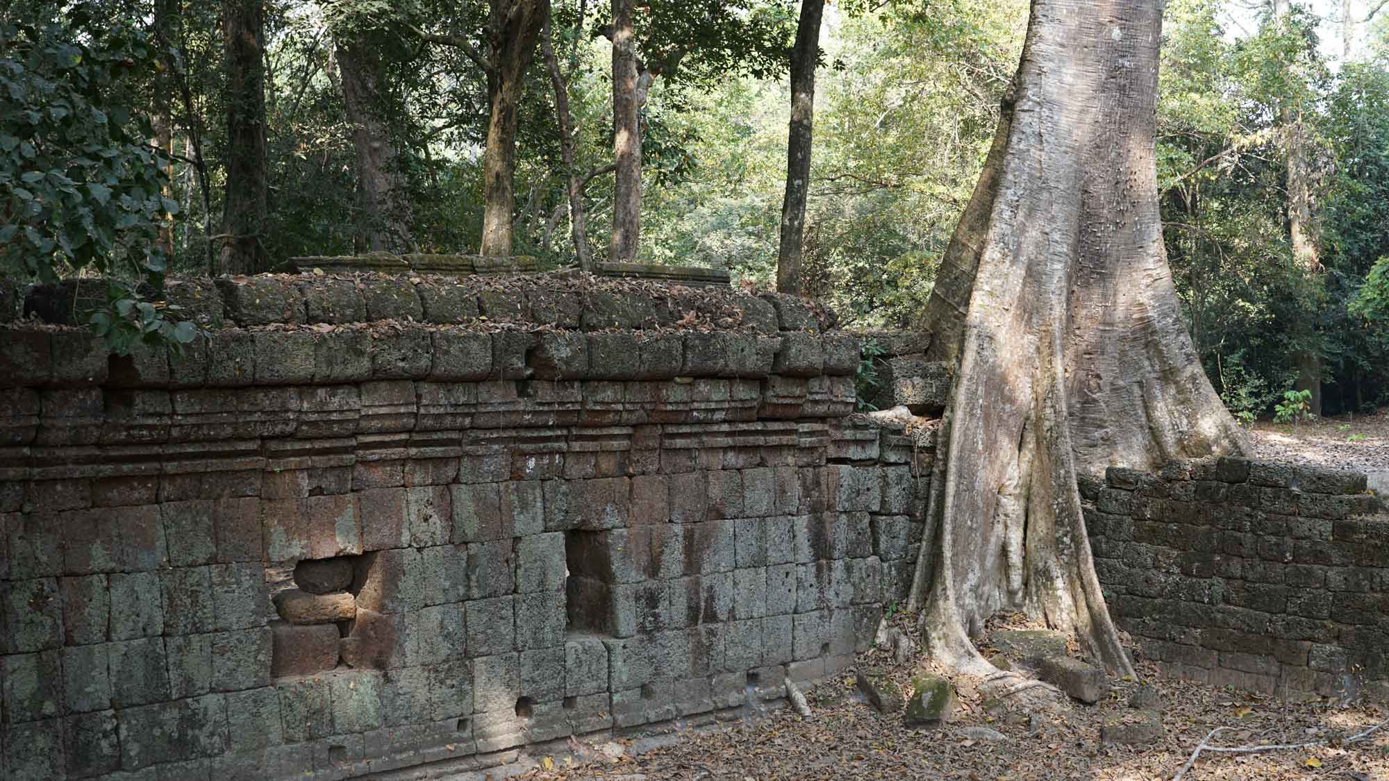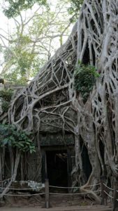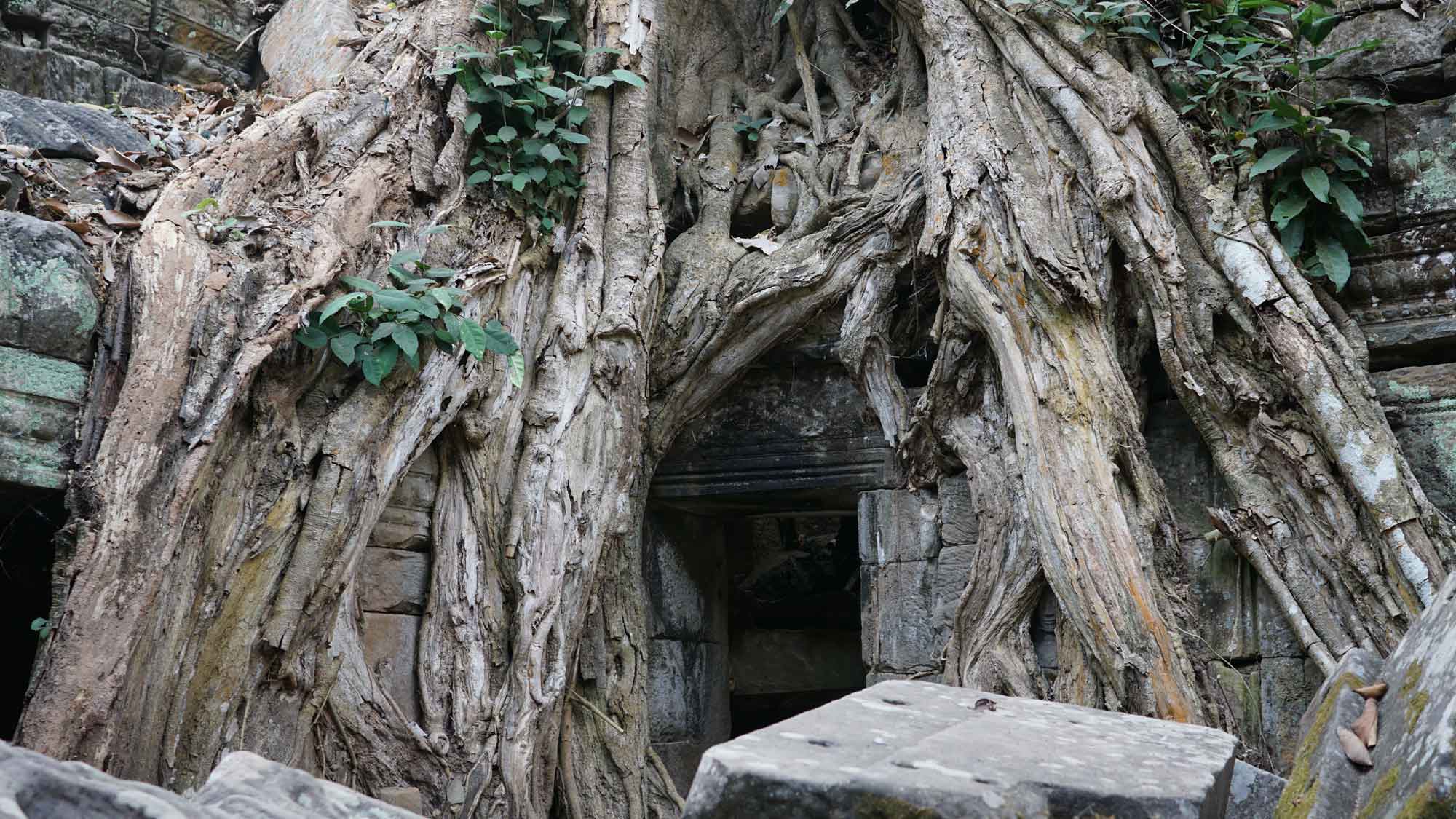 Après le repas, on se balade dans un temple moins connu un peu caché, le Krol Kô, qui recèle quelques pépites comme ce bas-relief qui semble avoir servi de terreau à cet arbre-éponge.