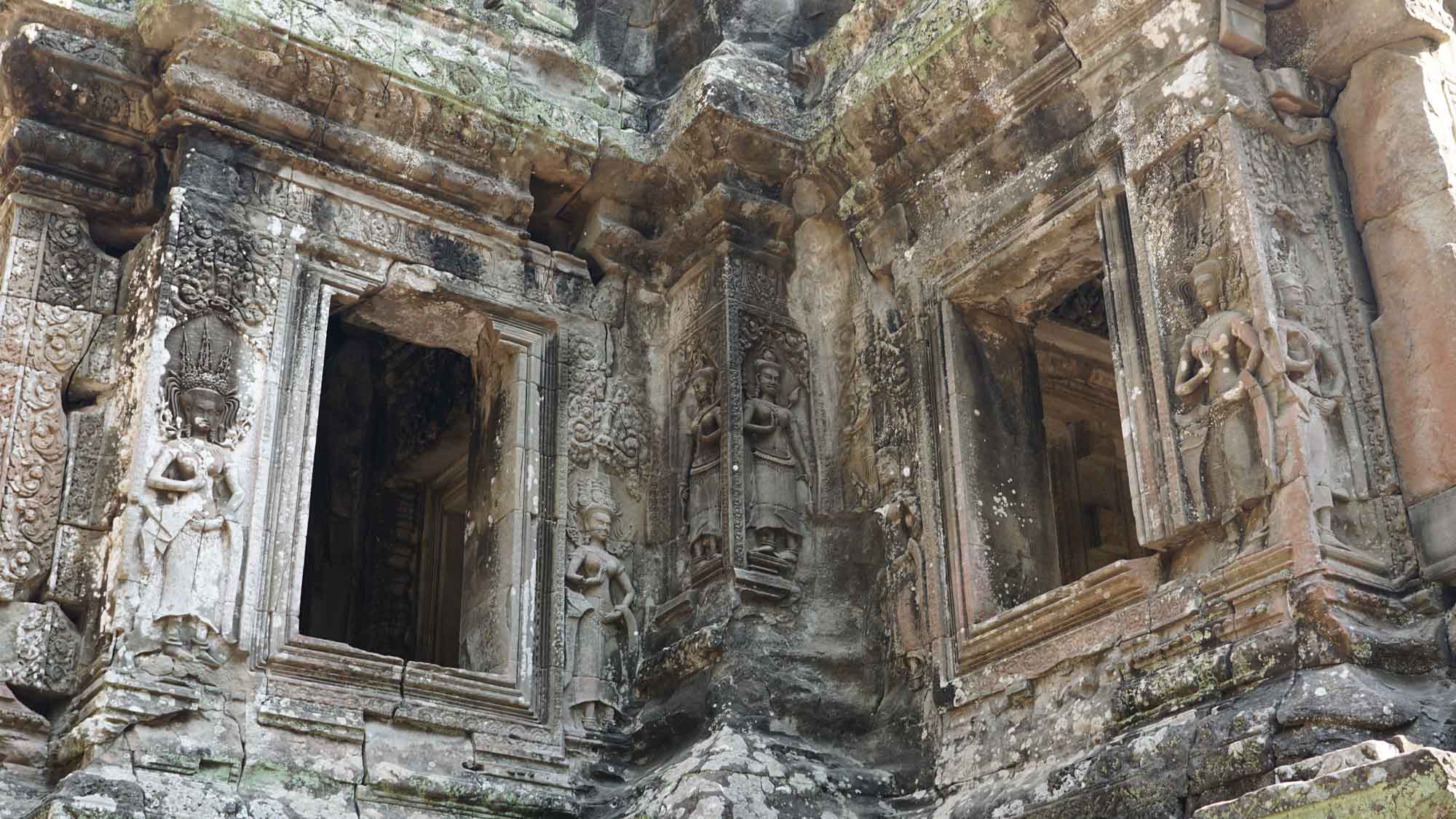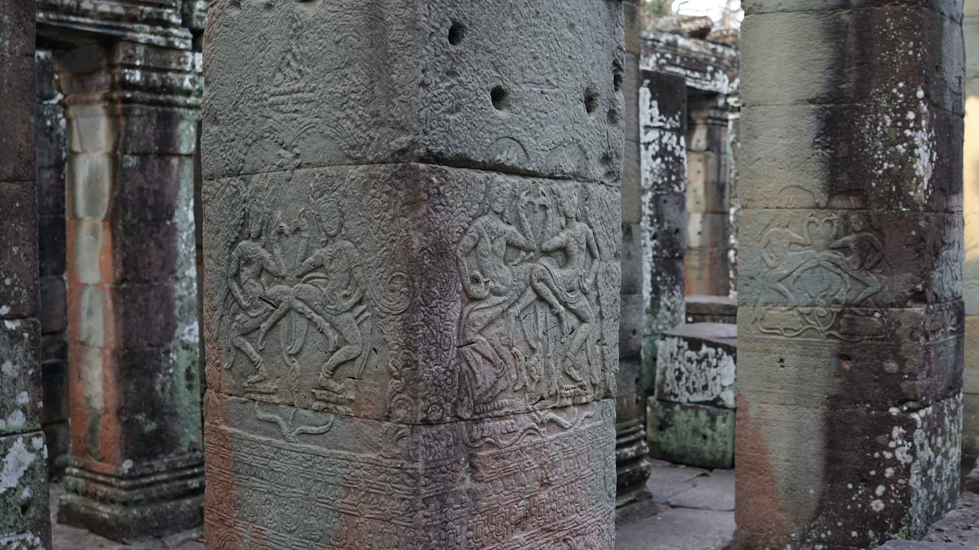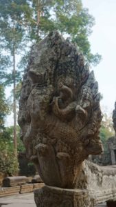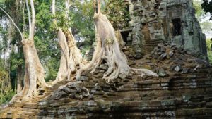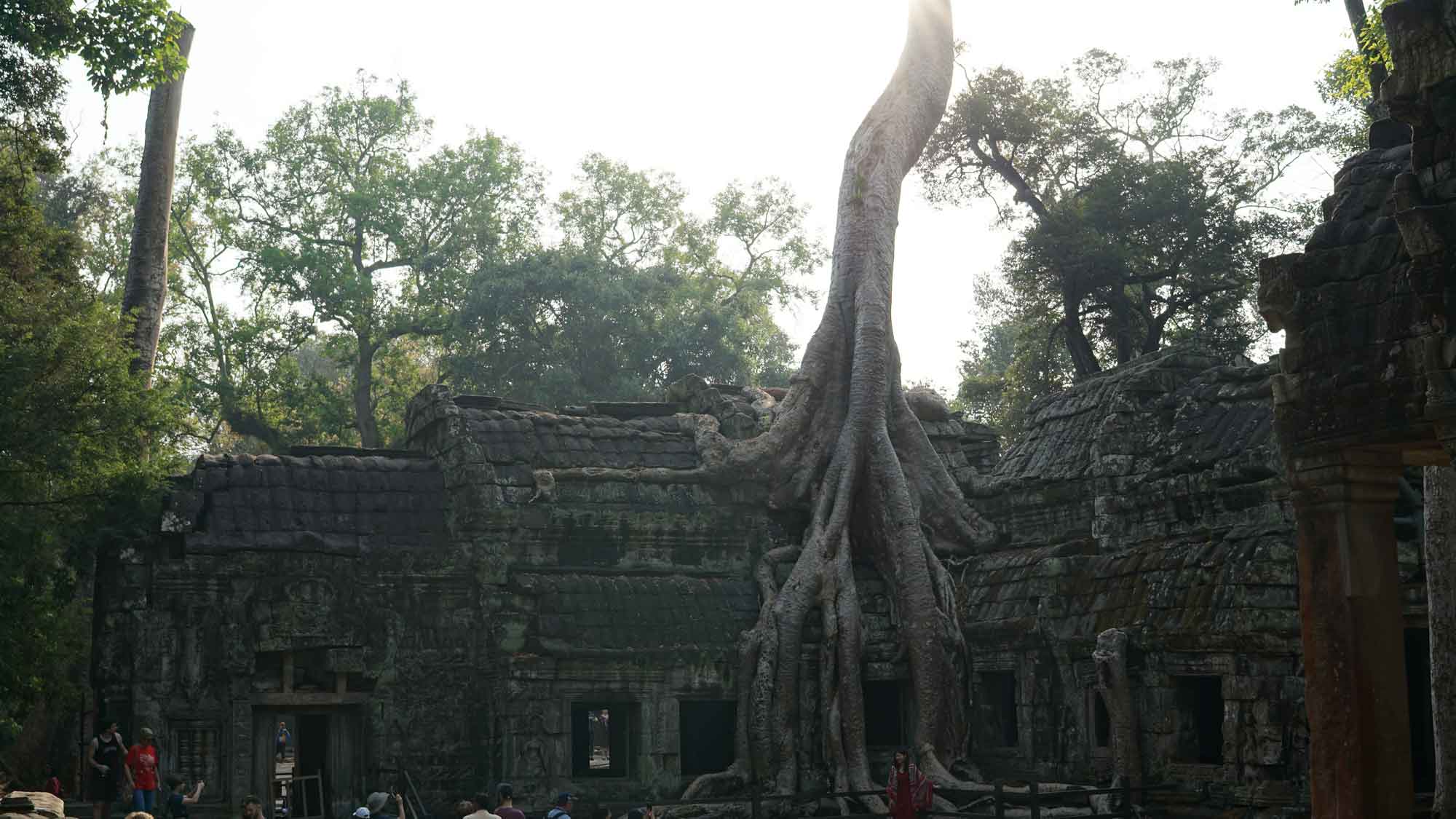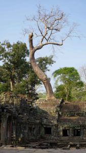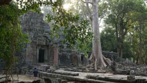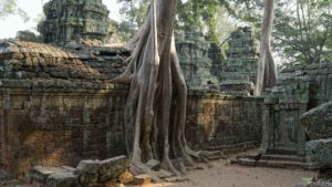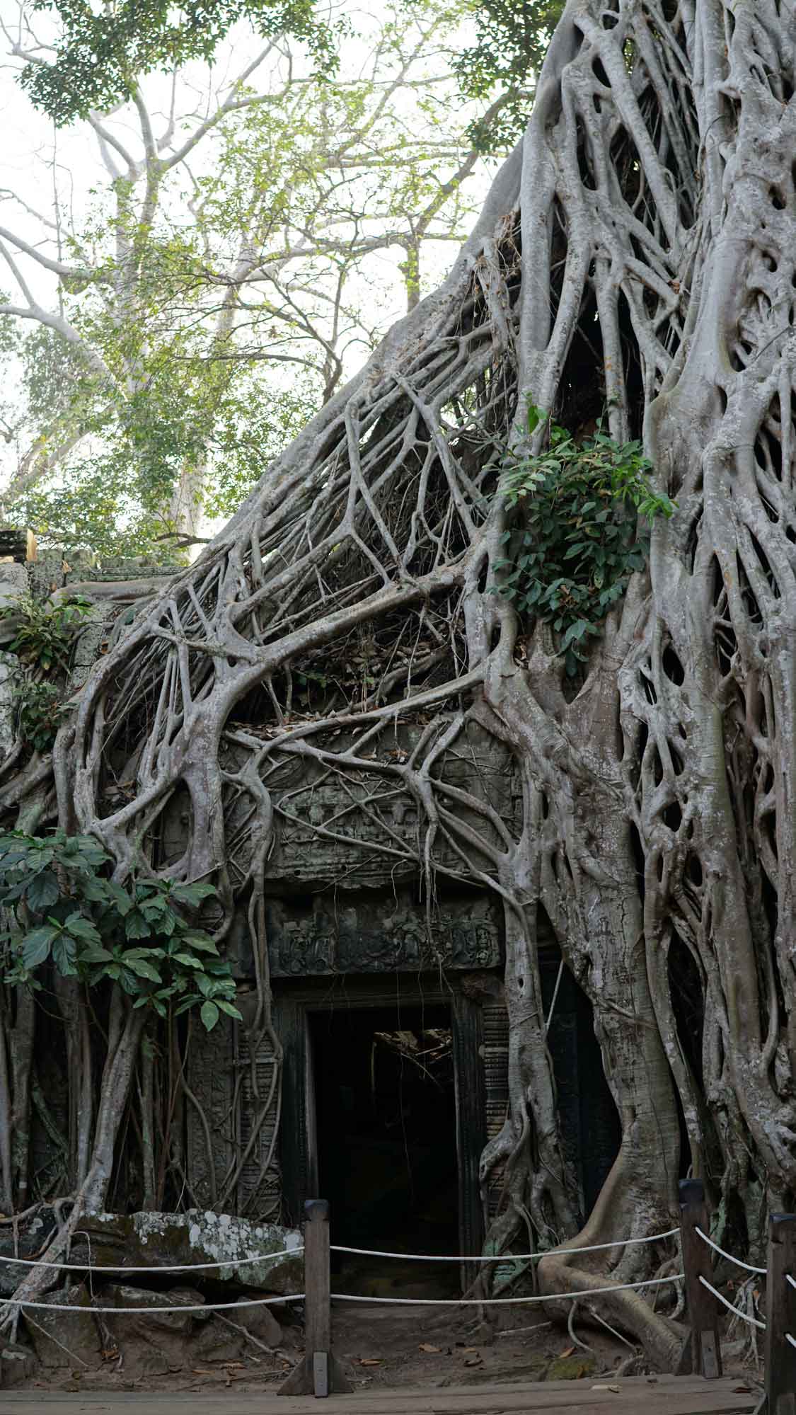 Après le repas, on se balade dans un temple moins connu un peu caché, le Krol Kô, qui recèle quelques pépites comme ce bas-relief qui semble avoir servi de terreau à cet arbre-éponge.