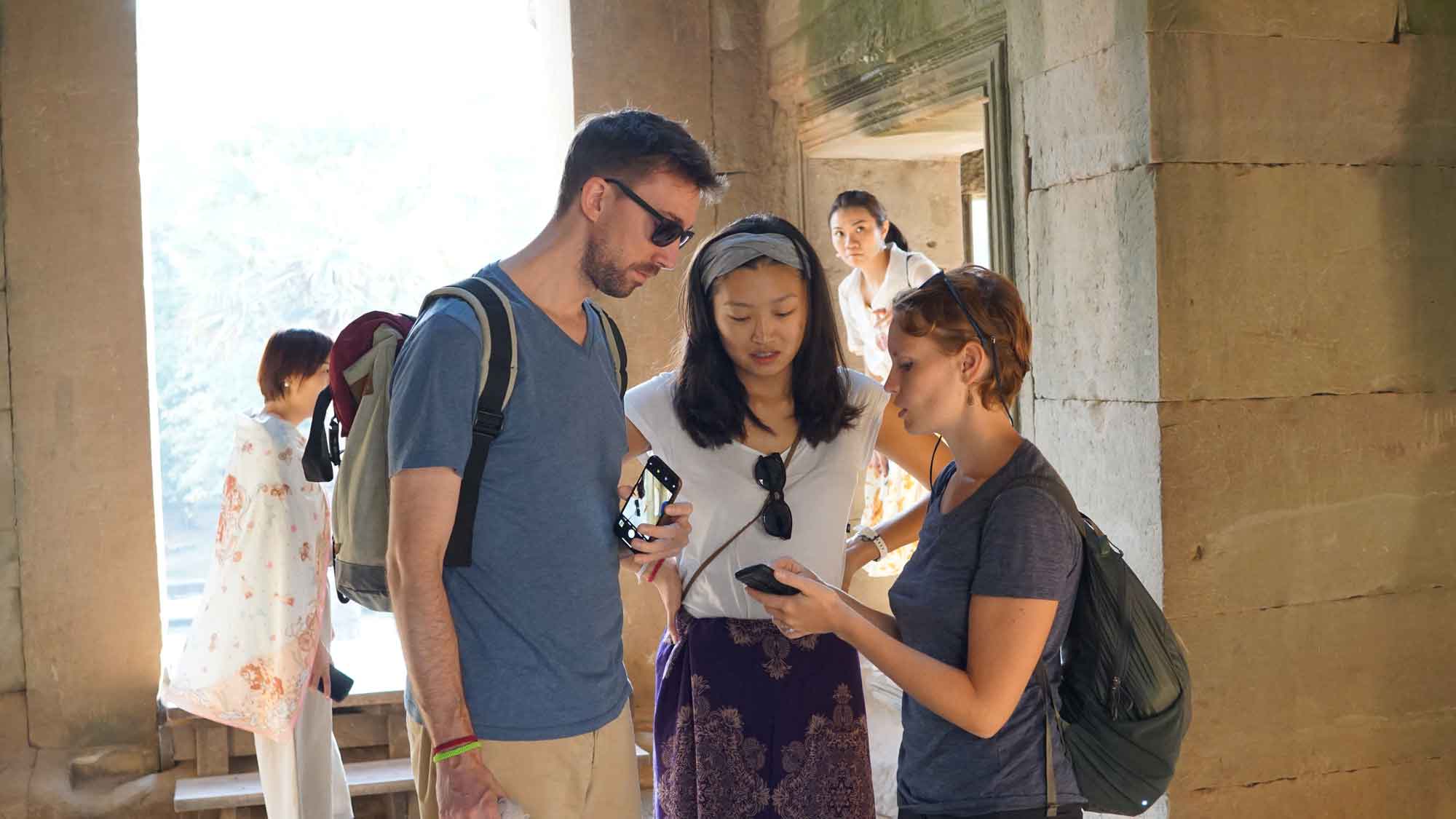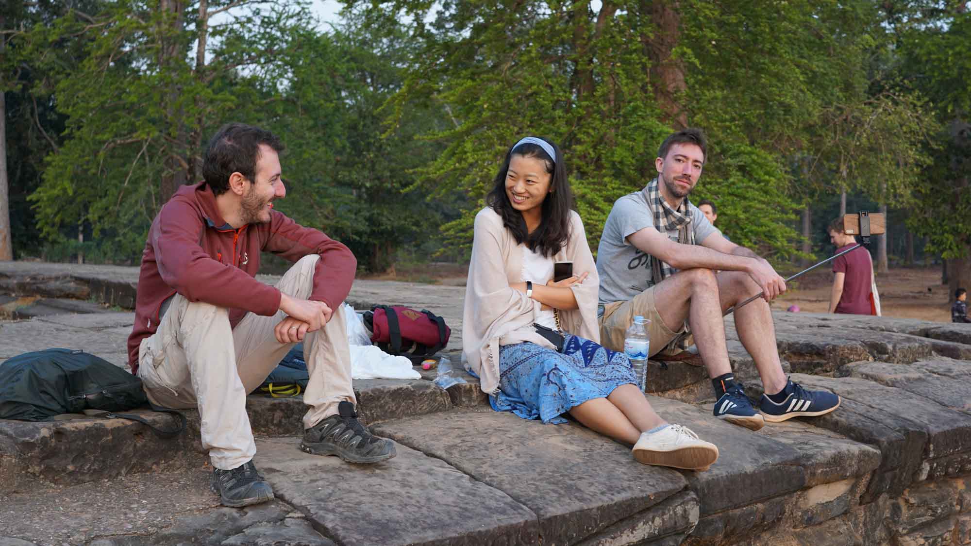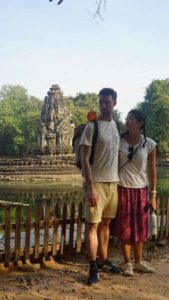 Nous voilà arrivés à Angkor, la « perle de l’Asie ». Après une journée et demi de récupération à notre hôtel Pool Party Hostel (super Guesthouse avec une belle déco ambiance Street art, une pisciiiine et un restaurant), nous retrouvons mon cousin Nicolas et sa copine Lexie, venus de Singapour, pour visiter les temples ensemble. Ça fait du bien de se retrouver en famille. 😀