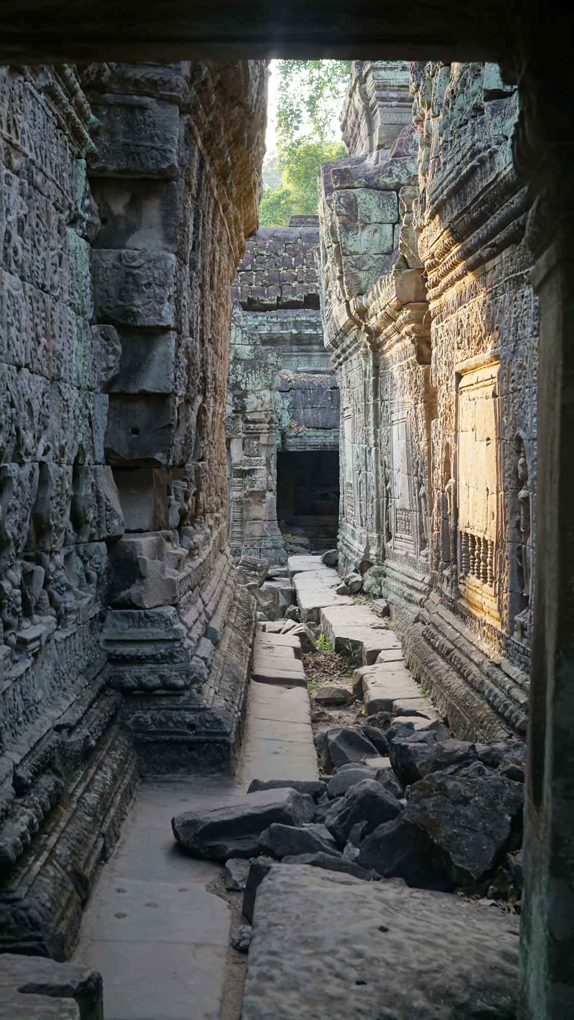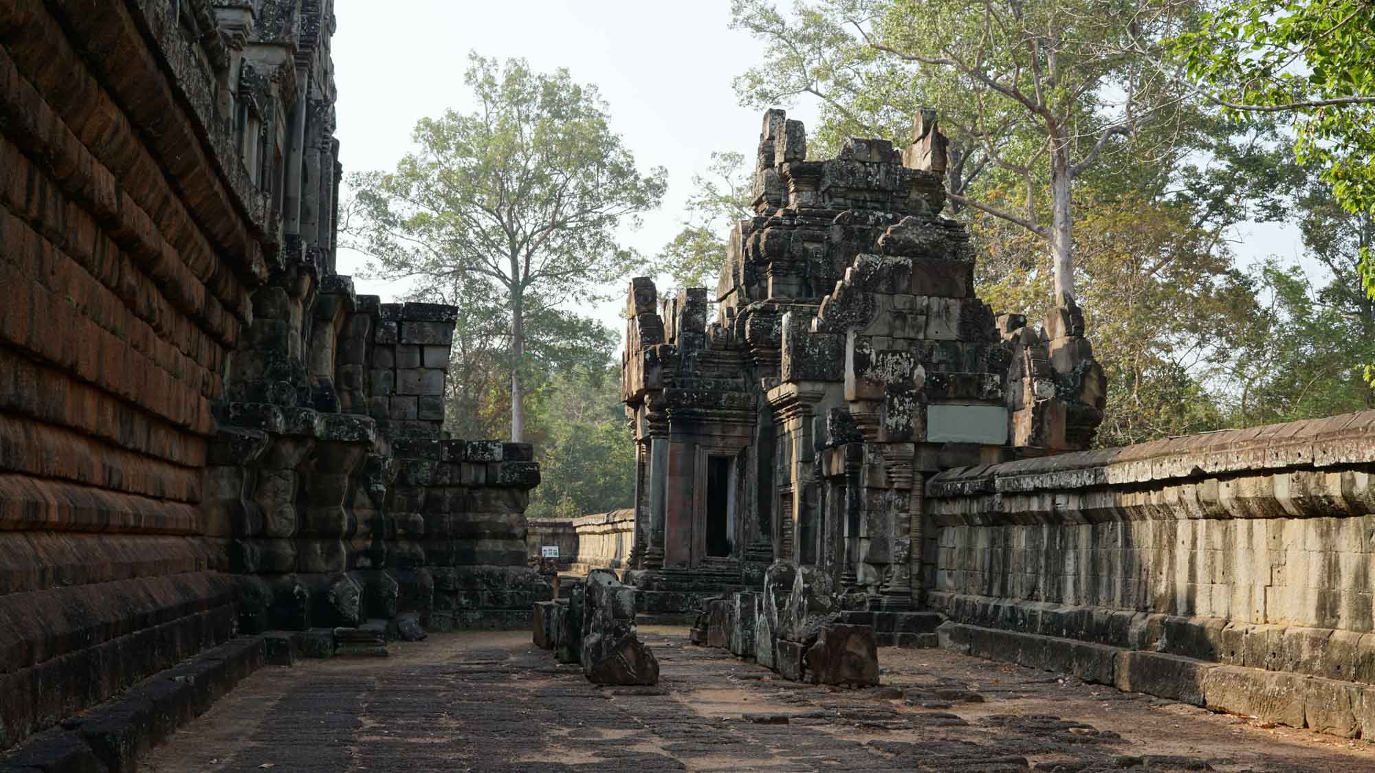 La température commence à rendre les choses difficiles, mais on s’accroche : d’abord la pyramide du Phimeanas, puis, menés par Camille qui s’enfonce dans la forêt avec l’énergie du désespoir, la pépite du Preah Palilay, magnifique petit temple en ruine avec ses trois arbres poussés sur les décombres.