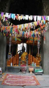 Le dernier temple de la zone, le Bayon, est un immense labyrinthe depuis lequel on peut voir les grandes sculptures de visages qui sont entre autre l’effigie des temples d’Angkor. Il y a beaucoup de monde, mais on apprécie beaucoup le passage. 🙂
