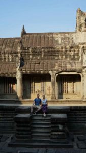 En théorie, il nous restait le Angkor Wat, LE temple, à faire dans le tour, mais ça fait vraiment trop. En plus il est 12h30, et la seule chose dont on rêve, c’est une douche 😛. On repart donc a notre hôtel où finalement une chambre s’est libérée, et on fait une énorme sieste ! Camille travaille aussi sur l’ordinateur pour lancer une série de vidéos YouTube qu’elle compte enregistrer pendant le voyage, et Romain se remet de son réveil à 4h.