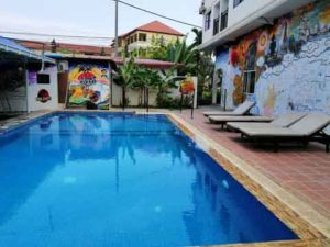 Ensuite, après s’être un peu perdus les uns les autres, on va se rafraîchir à un des restaurants, avant de prendre le chemin du retour. Ah oui, on ne vous avait pas dit, mais on a encore dû changer d’hôtel 🤣. C’est la première fois qu’on a eu autant de soucis, à cause du Nouvel An chinois qui correspondait aussi à des jours fériés au Cambodge. En bref, on est retournés au Pool Party Hostel de nos premiers jours, où on a amplement profité de la piscine. 😁