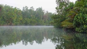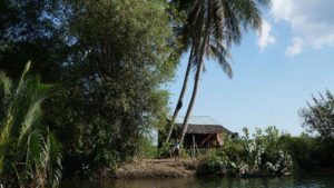 Depuis nos trois semaines perdues à Ko Chang, on rêvait de nature retrouvée, c’est pourquoi nous sommes allés nous perdre au village de Chi Phat, au sud du Cambodge, dans les Cardamom Mountains. Même si c’est un endroit qui se mérite (six heures de bus de Siem Reap à Pnom-Penh, une nuit qui nous a coûté une fortune dans un hôtel pourri, puis cinq heures de bus jusqu’à Andoung Tuek suivies de deux heures de bateau sur le fleuve le long des mangroves), on est très heureux d’avoir fait l’effort d’y venir !