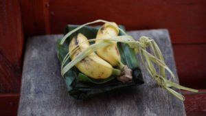 On démarre à 5h20 avec rendez-vous au Community Center pour récupérer les sacs à dos qu’on nous prête, contenant nos hamacs à moustiquaire intégrée et une couverture pour la nuit. On avait hésité à utiliser nos propres sacs à dos, et au final on aurait probablement mieux fait, mais ils n’étaient quand même pas mal 🙂. On nous a aussi remis notre petit déjeuner (un délice de pancakes et bananes avec des morceaux de mangue, le tout savamment empaqueté dans des feuilles de bananier 🥰), puis on part tous les trois avec notre guide Kim et le cuisinier Sowann.