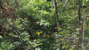 Le trek commence vraiment, on s’enfonce dans la jungle qui résonne des chants d’oiseaux et des gibbons, c’est top. Heureusement — ou malheureusement — Camille renonce bientôt à garder l’appareil photo sorti (il fait très humide et les sacs nous pèsent quand même bien sur les épaules), donc on a assez peu de photos à part celles prises avec le téléphone. En revanche, elle a enregistré plusieurs fois les sons de la jungle, et cette ambiance assez magique…