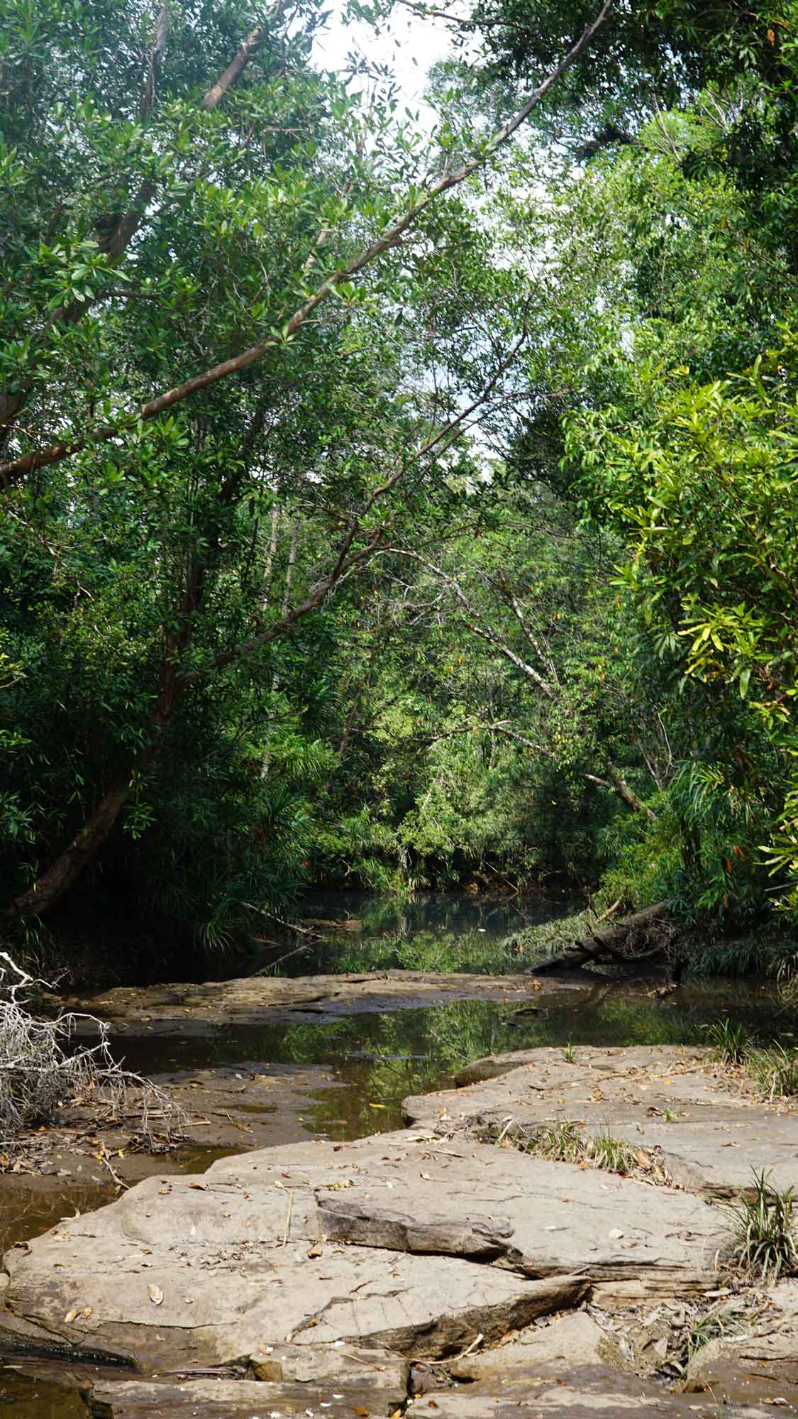 L’après-midi, on s’offrira une deuxième escapade à pied jusqu’au point de baignade. On s’attendait à retrouver le calme paradisiaque de la première fois, manque de bol, à quelques dizaines de mètres derrière les rochers, des jeunes avaient ramené JUSQU’À LA RIVIÈRE un système de karaoke poussé à fond… C’est pas grave, c’était bien drôle, surtout quand on a entendu une voix de français entonner « Sous le Vent » et « L’aventurier » au milieu de toutes ces chansons khmer 😆. On rentre en passant entre les maisons et les champs de bananiers, et après une dernière soirée en famille, on reprend le bus le 3 février au matin pour quitter le Cambodge.