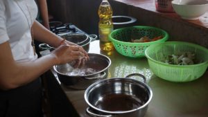Après s’être échangé conseils et infos (Andy va à Siem Reap bientôt, et connaît bien la Nouvelle-Zélande où on va le mois prochain), on se dit au revoir le lendemain matin. Nous on restera tranquilles, à part le matin une petite séance de cuisine où on verra avec quels ingrédients se prépare le curry traditionnel.