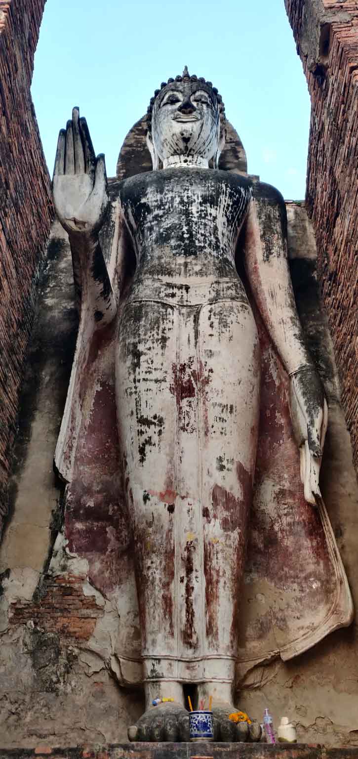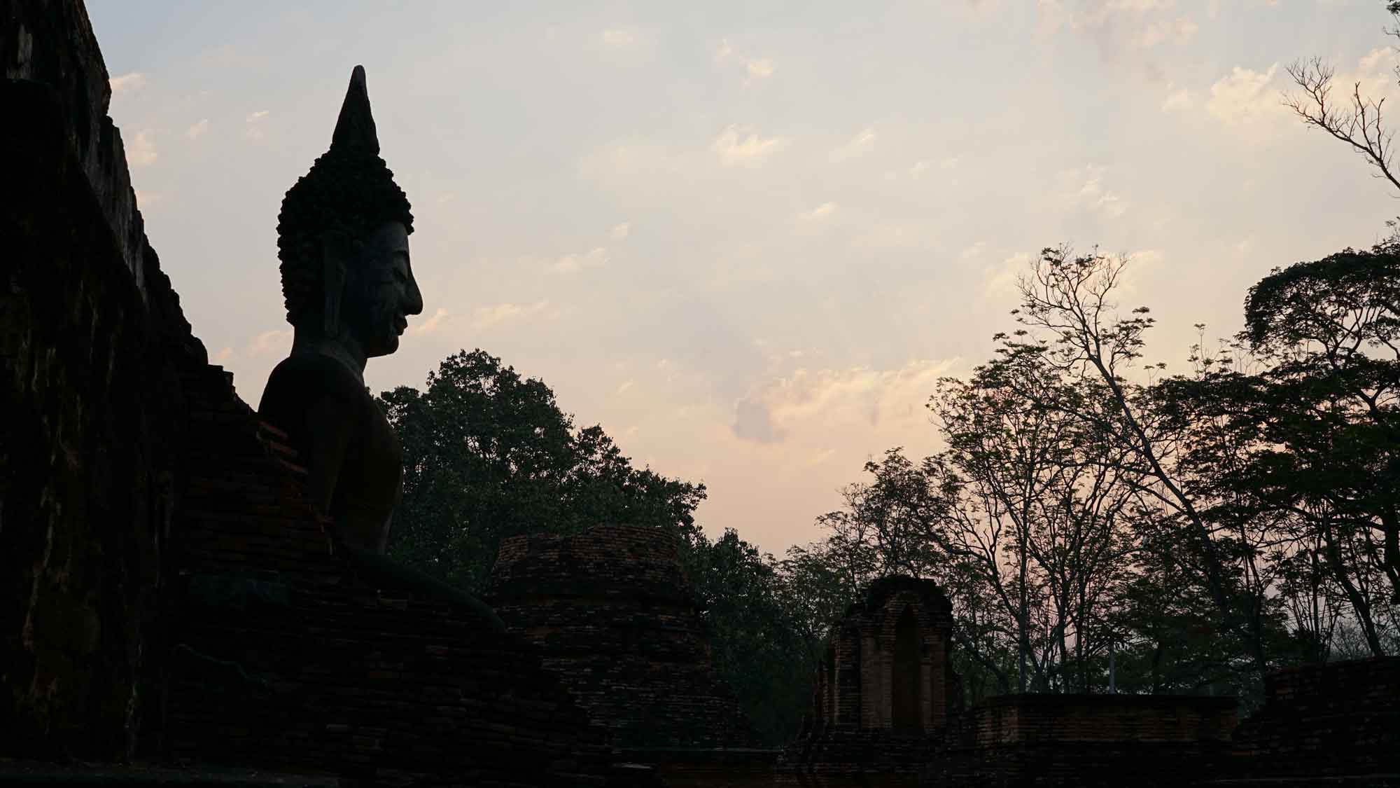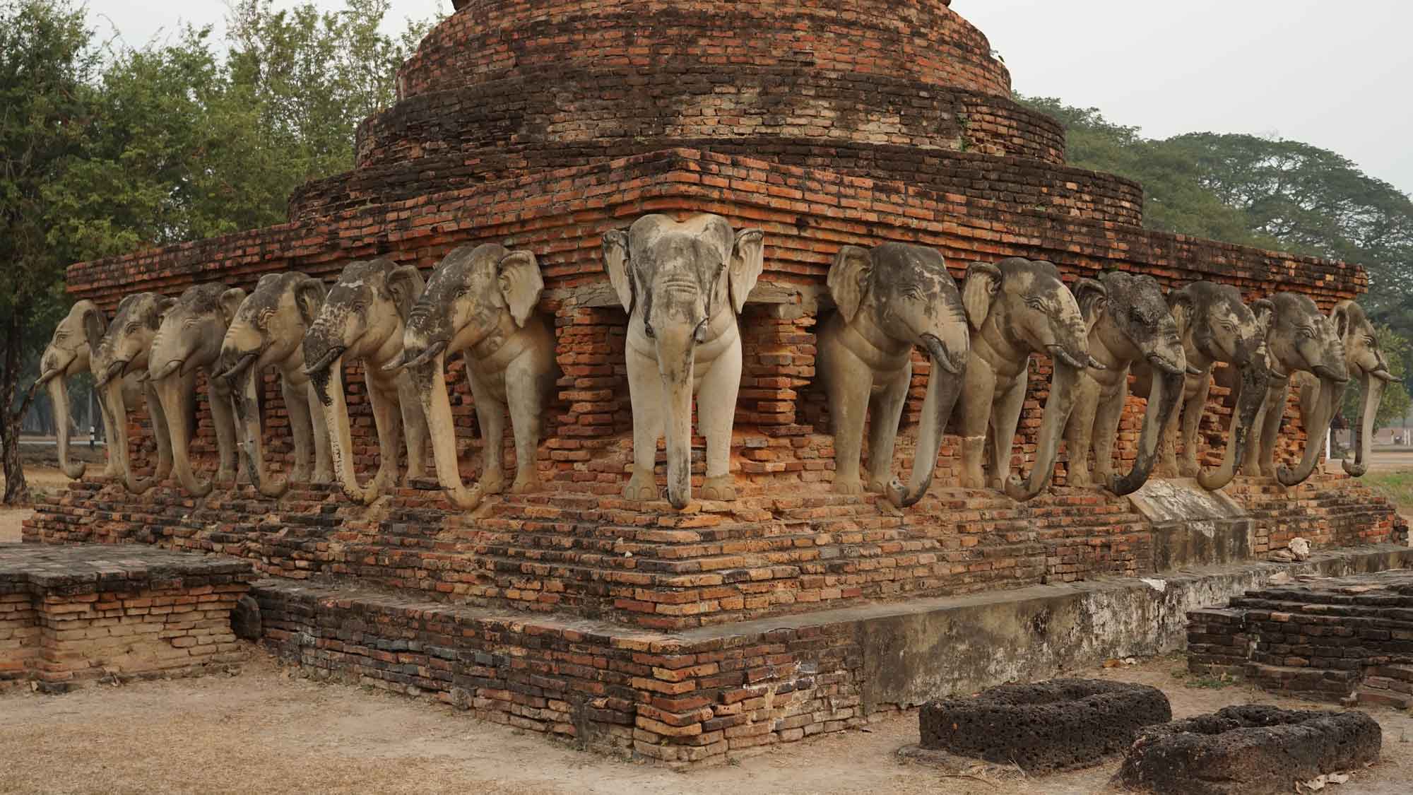 Le lendemain matin, nous partons tous les deux vers 7h pour visiter la zone du nord. Les temples sont en moins bon état mais c’est sympa quand même, entre les éléphants du Wat Sorasak, le lever du soleil au Wat Phra Pai Luang et surtout le grand Bouddha caché du Wat Si Chum. 😶