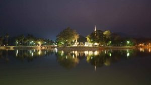 La ville de Sukhothaï est coupée en deux parties séparées d’une dizaine de kilomètres. Nous avons choisi de dormir directement dans le Old Sukhothai pour être juste à côté des temples. Si l’hôtel était moins sympa que celui d’Ayutthaya, on a aussi beaucoup aimé l’ambiance de la ville !