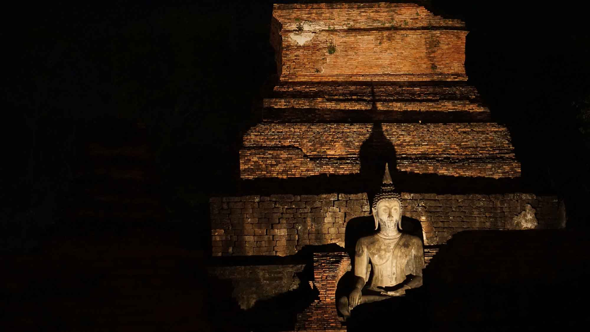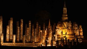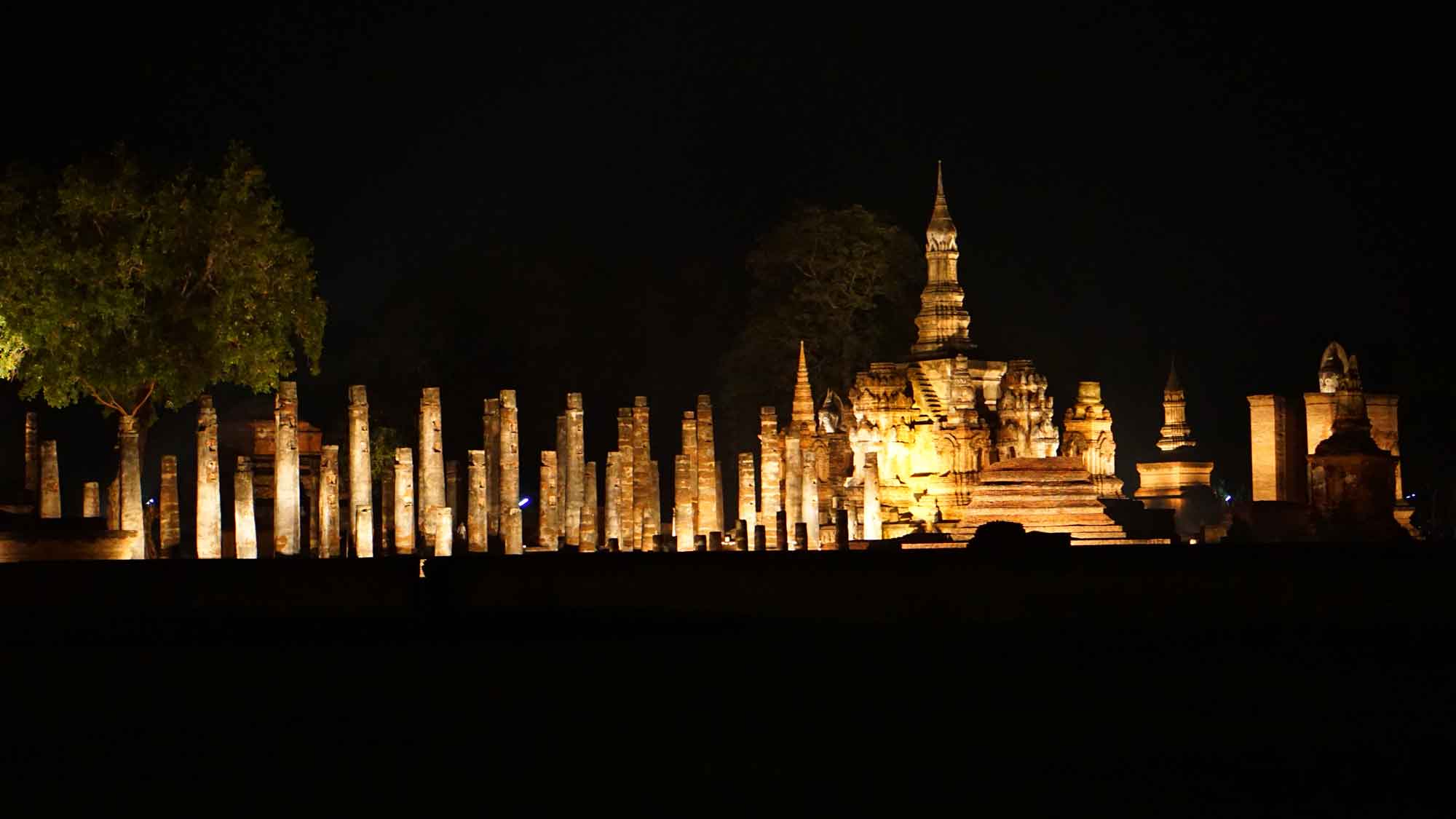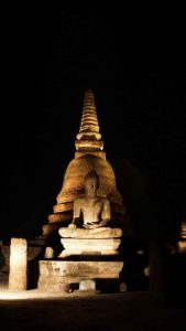 Enfin, pour terminer la soirée, nous faisons une dernière petite virée au Wat Maha That, presque vide et savamment éclairé. Romain se fait très plaisir sur les photos tandis que Camille savoure l’ambiance… Puis après un crochet pour revoir le temple du premier soir, on rentre se coucher.