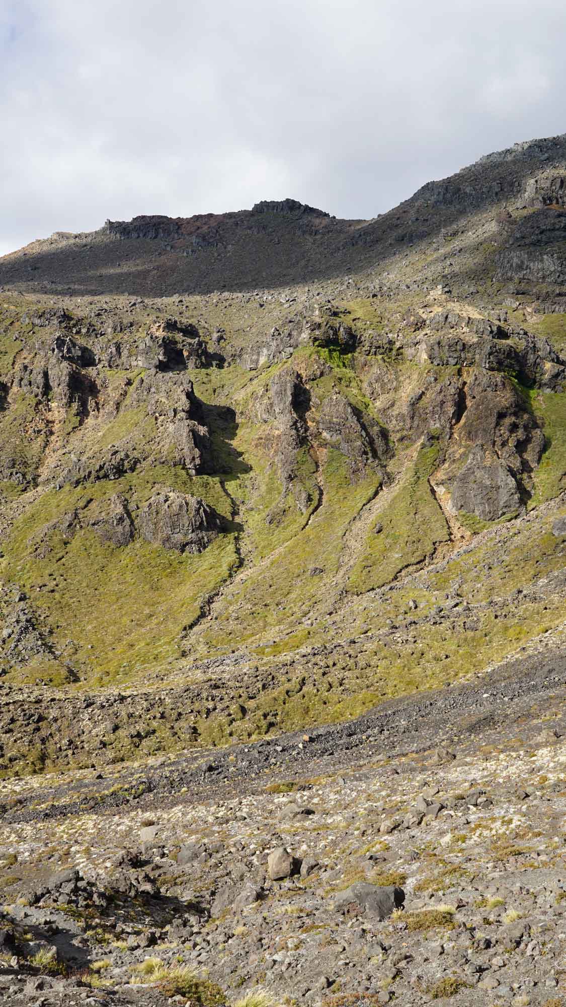 On continue… et là il n’y a plus personne, c’est génial. On essaye de se motiver à avancer vite pour se laisser une possibilité de faire le deuxième tronçon dans la journée (si on arrive au premier refuge Waihohonu avant 16h ça peut encore le faire), mais on se fait pas trop d’illusion… Comme la balade tourne autour du volcan Ngauruhoe, on passe devant la face exacte où ils ont tourné les scènes du Mordor, c’est trop bien ! On parle du Seigneur des Anneaux (forcément), en s’arrêtant un peu quand on croise des gens qui arrivent de l’autre sens, l’air bien crevés. Quand on leur raconte notre plan de condenser deux jours en un, ils répondent « ben ça va être une grooosse journée votre deuxième jour… », mais bon, c’est un peu tard pour s’inquiéter hein. 😛