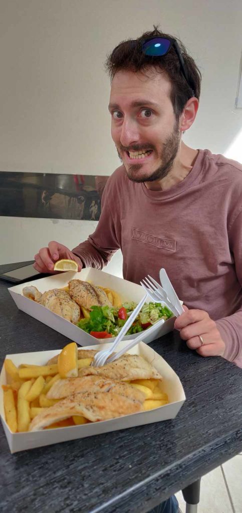 À 13h on leur demande si c’est ok d’aller manger quelque part et on leur laisse la clef. Oui oui, on marche pas mal et on va manger dans un fish’n’chips TROP BON. 🤤