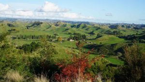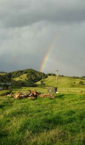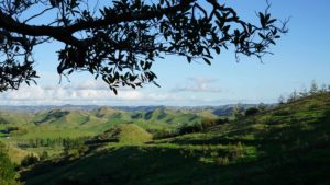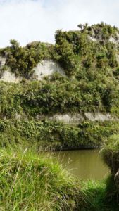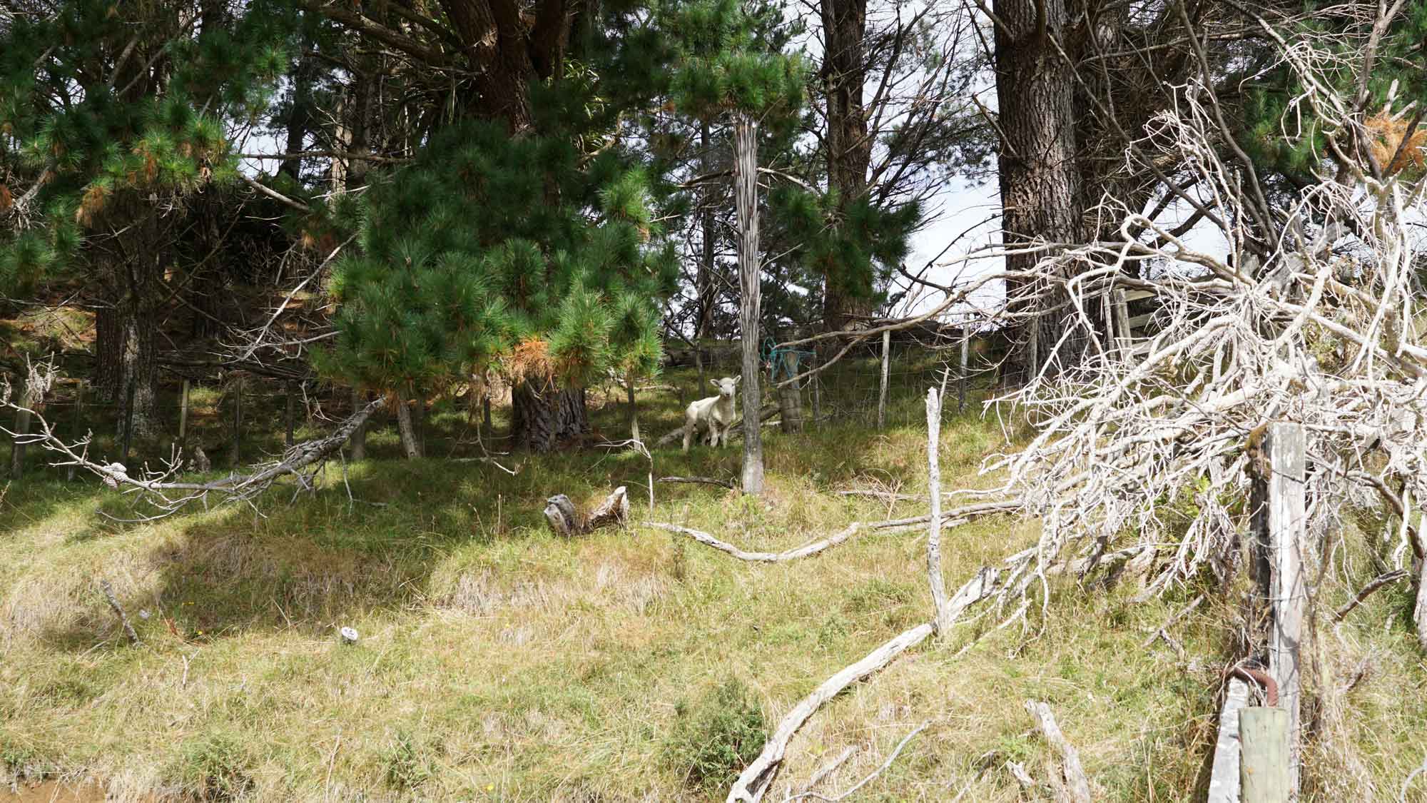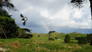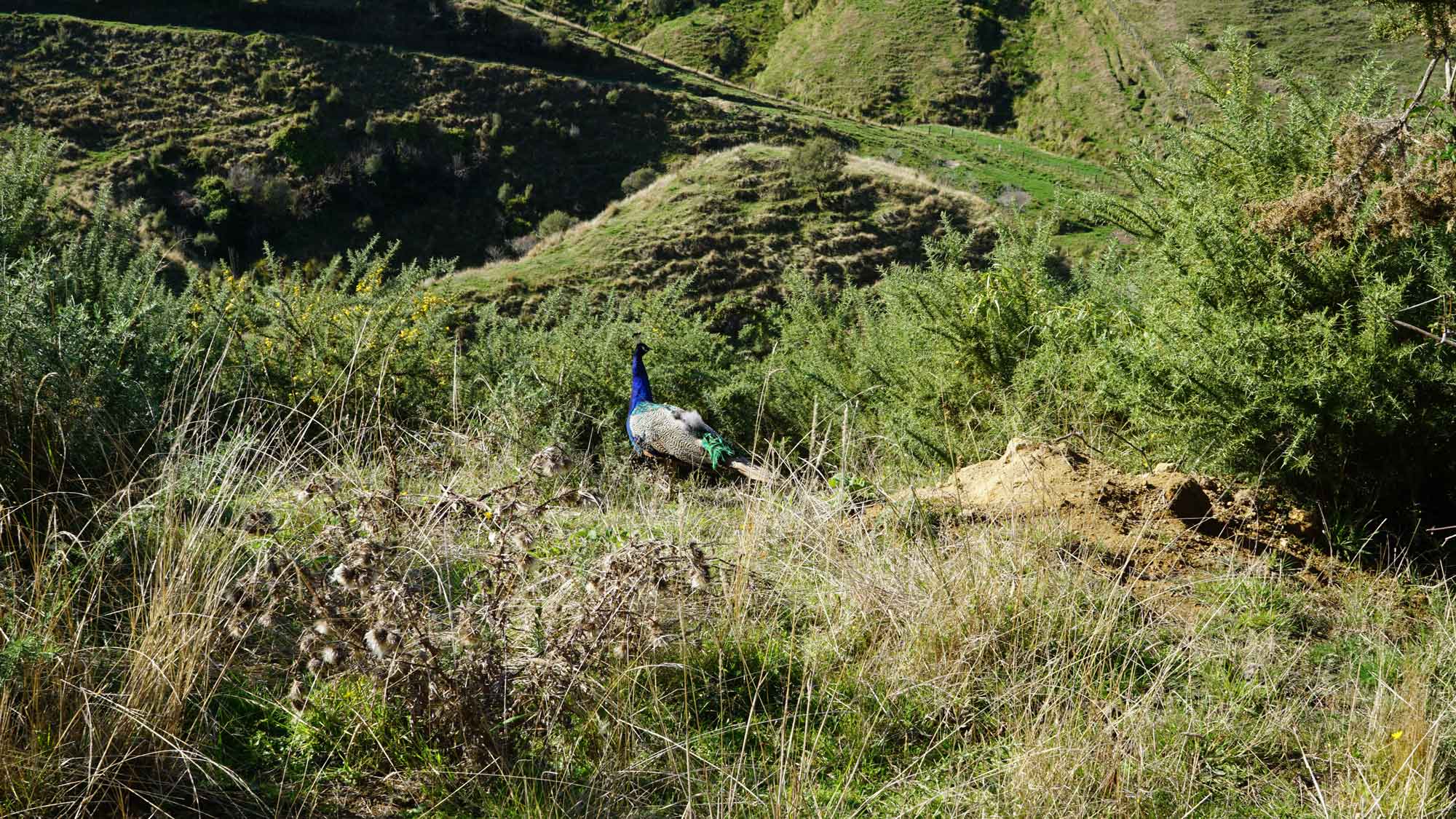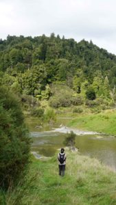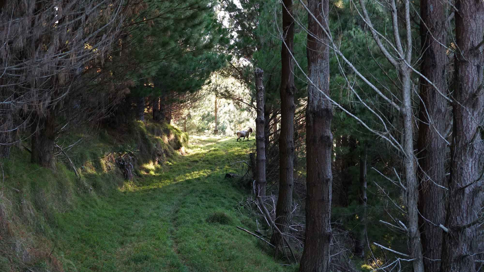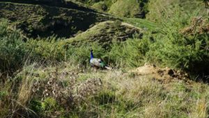 La forêt est très belle aussi, et regorge d’oiseaux dont l’incroyable tui, au chant complètement absurde (on dirait une horloge cassée), et surtout de chèvres sauvages qui parcourent les chemins en bandes de quatre ou cinq, et qui sautent dans la pente dès qu’elles nous voient. C’est vraiment impressionnant de les voir filer ainsi, mais apparemment elles sont une vraie plaie pour les fermiers car elles broutent toute l’herbe des terrains prévue pour les vaches. Il y a même un paon qui s’est installé dans le coin, et qu’on a croisé par hasard en se baladant un jour jusqu’à la rivière à l’extrémité du terrain (une heure et demi de marche tout de même !).