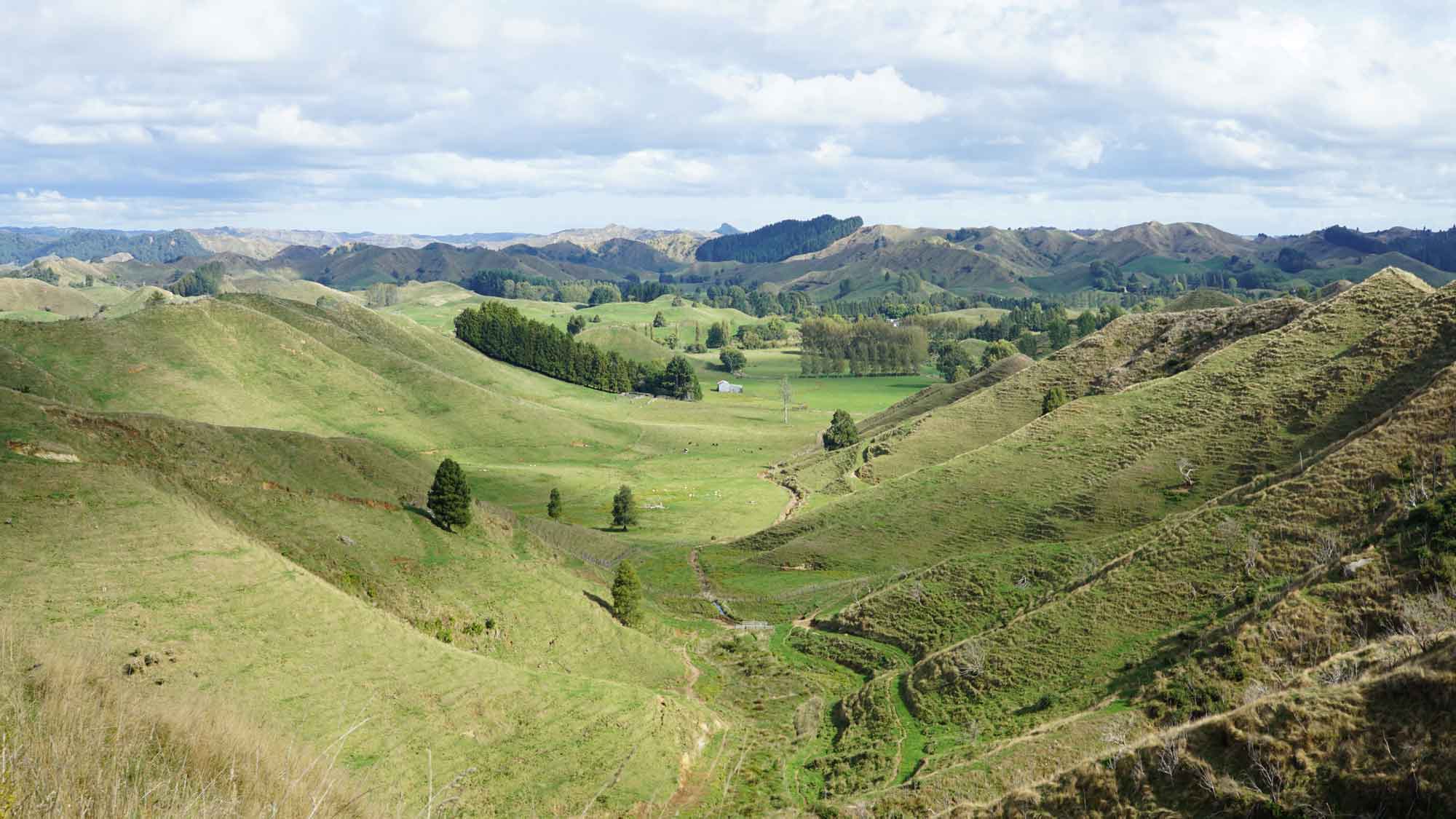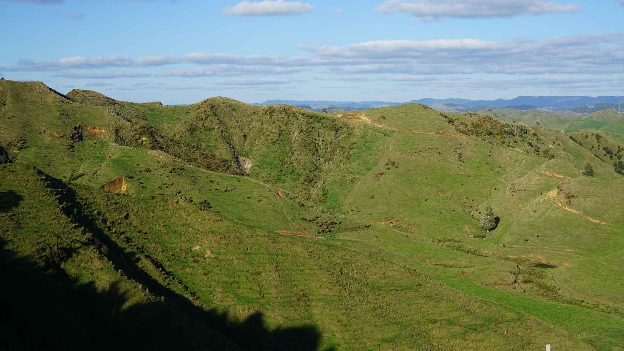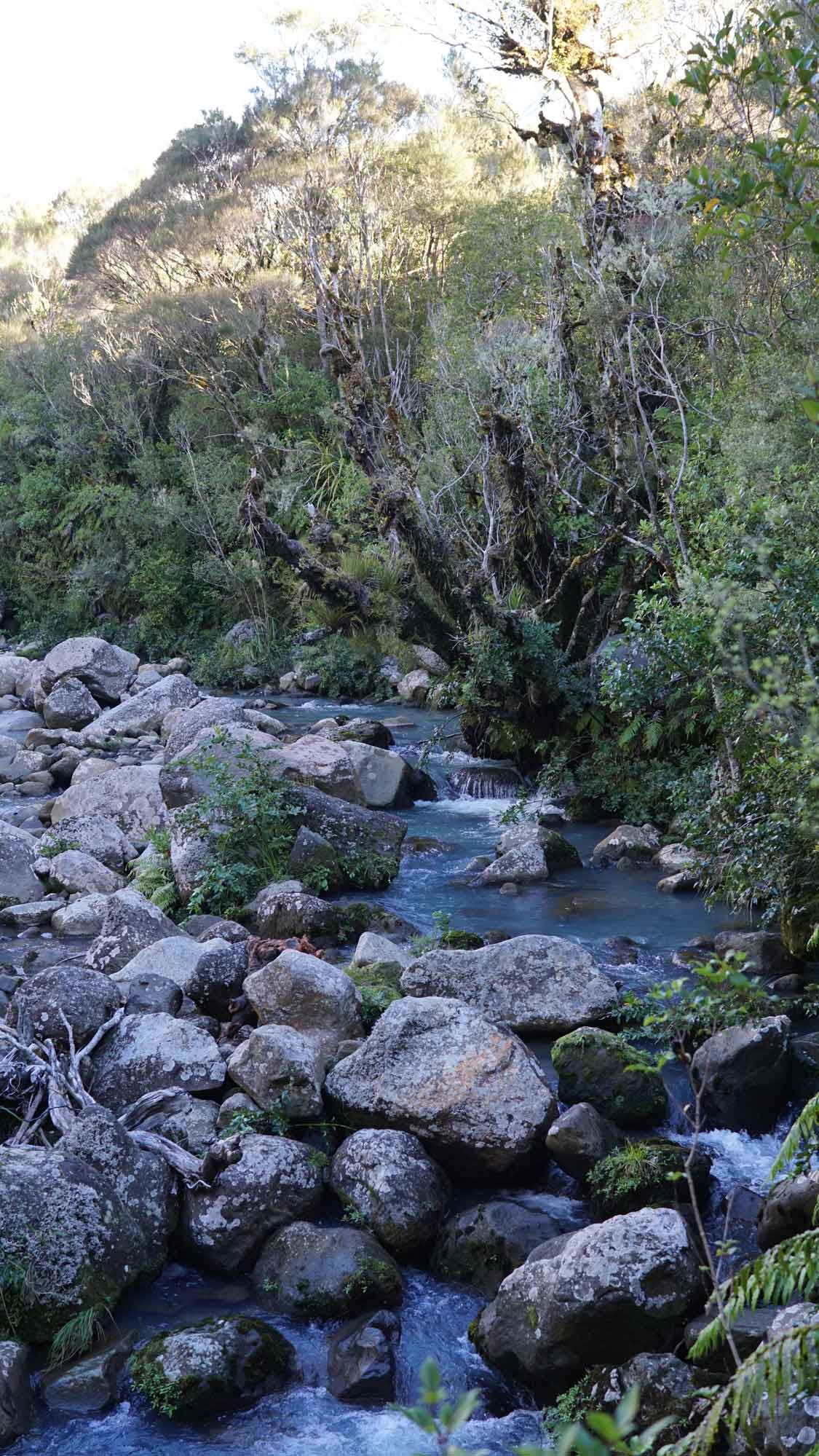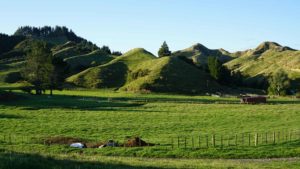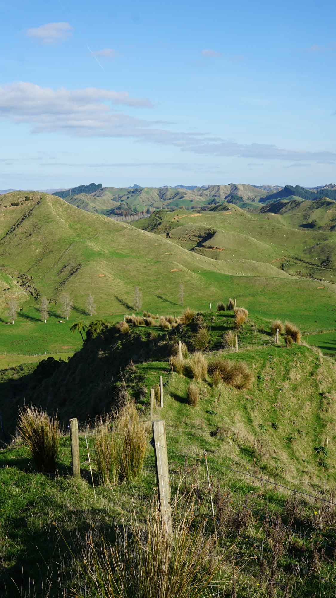 La forêt est très belle aussi, et regorge d’oiseaux dont l’incroyable tui, au chant complètement absurde (on dirait une horloge cassée), et surtout de chèvres sauvages qui parcourent les chemins en bandes de quatre ou cinq, et qui sautent dans la pente dès qu’elles nous voient. C’est vraiment impressionnant de les voir filer ainsi, mais apparemment elles sont une vraie plaie pour les fermiers car elles broutent toute l’herbe des terrains prévue pour les vaches. Il y a même un paon qui s’est installé dans le coin, et qu’on a croisé par hasard en se baladant un jour jusqu’à la rivière à l’extrémité du terrain (une heure et demi de marche tout de même !).