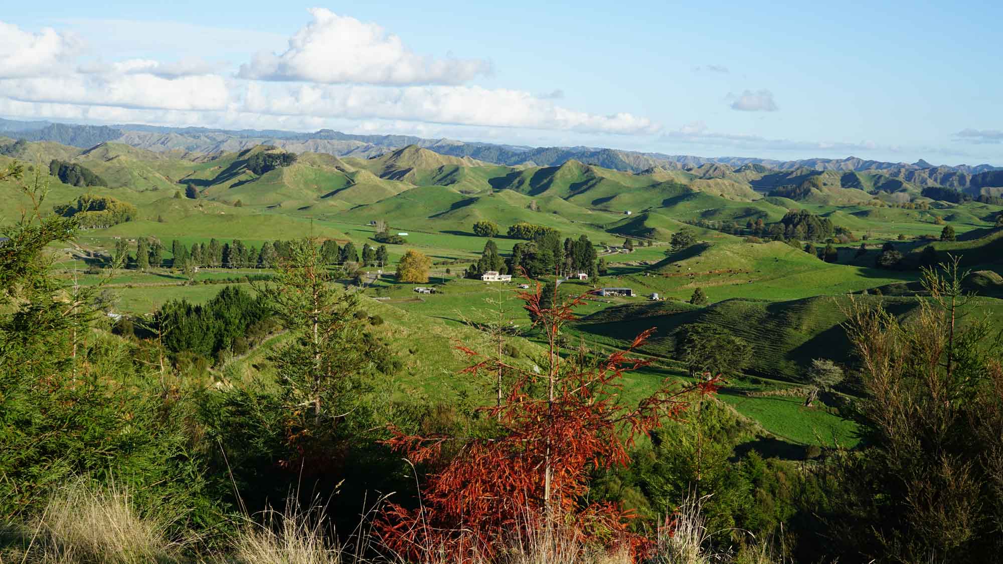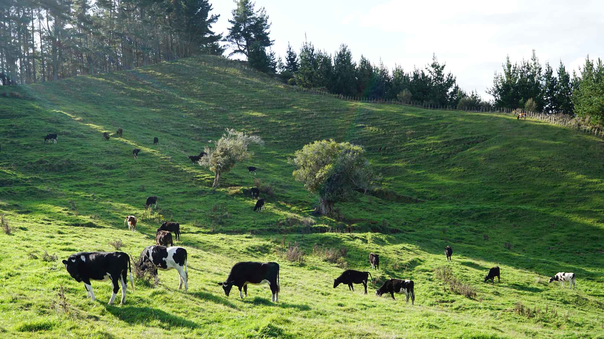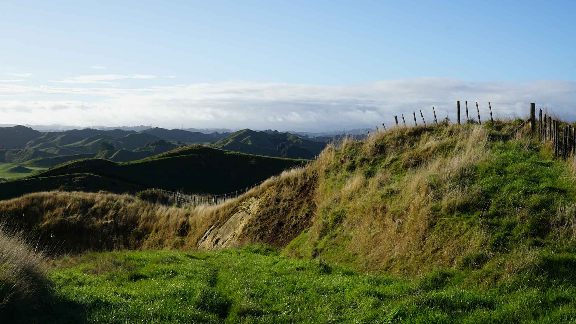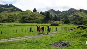 La forêt est très belle aussi, et regorge d’oiseaux dont l’incroyable tui, au chant complètement absurde (on dirait une horloge cassée), et surtout de chèvres sauvages qui parcourent les chemins en bandes de quatre ou cinq, et qui sautent dans la pente dès qu’elles nous voient. C’est vraiment impressionnant de les voir filer ainsi, mais apparemment elles sont une vraie plaie pour les fermiers car elles broutent toute l’herbe des terrains prévue pour les vaches. Il y a même un paon qui s’est installé dans le coin, et qu’on a croisé par hasard en se baladant un jour jusqu’à la rivière à l’extrémité du terrain (une heure et demi de marche tout de même !).