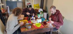 Même si on est isolés, on ne s’ennuie pas : avec le van, Camille a récupéré une petite guitare bleue, et tout le monde s’y met (même Romain, qui sait maintenant accompagner La Corrida de Cabrel !). Camille donne des cours de musique à Sara et Juan, et Sara donne des cours d’italien. Grâce aux films et aux livres que nous avions téléchargés suite à vos petites recommandations, nous avons de quoi nous faire des après-midi lecture et des soirées cinéma (et nous traumatiser avec Melancholia le premier soir haha). Ainsi que quelques soirées puzzle et jeux, Time’s Up et Concept dont Camille s’amuse à recréer un plateau.