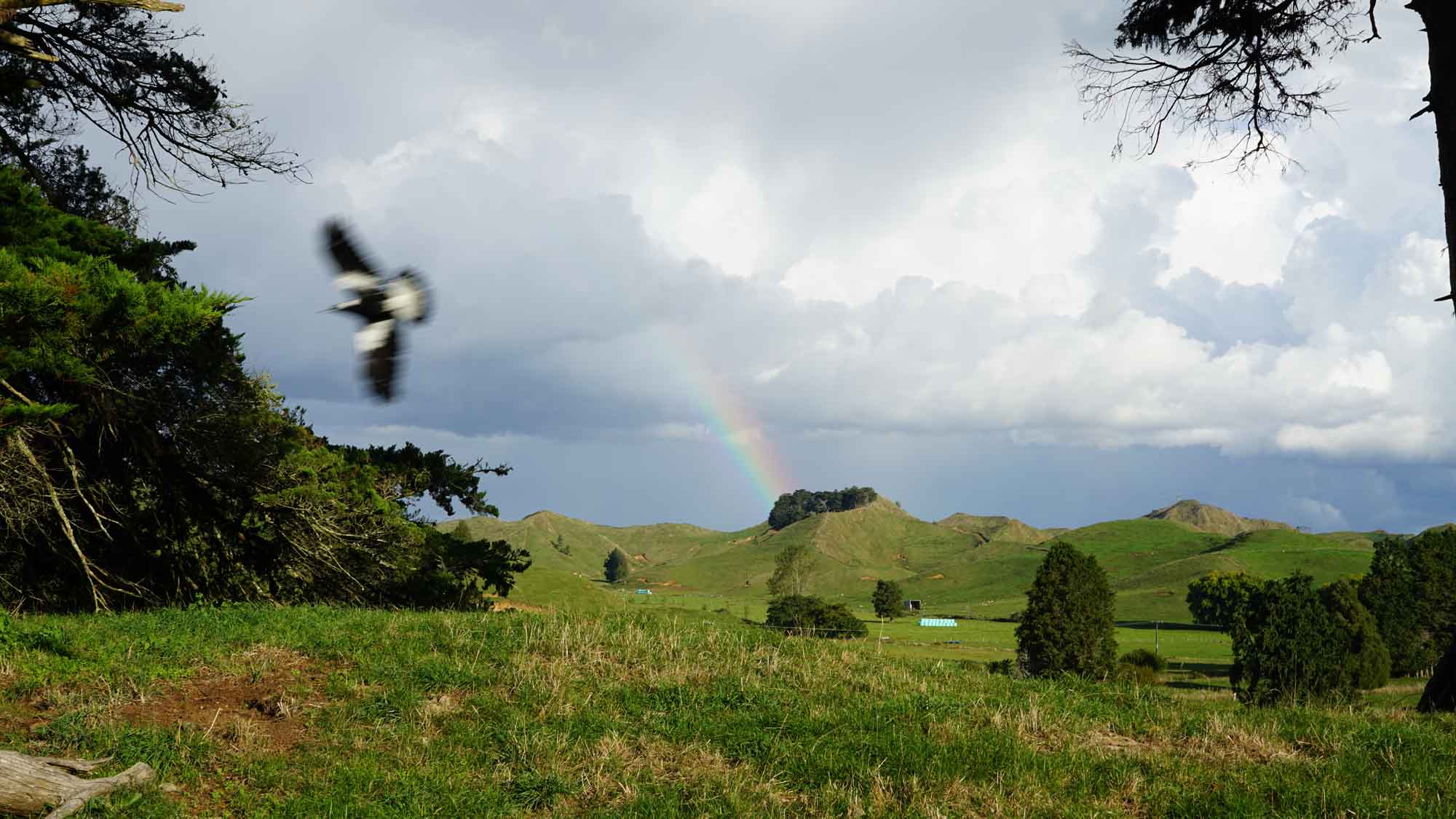 On a aussi des petits voisins qui peuplent la maison et le jardin autour : les petits fantails, oiseaux hyperactifs et absolument craquants, qui voletent autour de nous et rentrent même parfois dans la maison. Mais aussi… les opossums, qui colonisent la région et en l’occurrence, notre plafond 😛 . Le soir, ça gratte, ça gratte… Nous on les trouve mignons, mais c’est apparemment un fléau dont les néo-zélandais essayent de se débarrasser par tous les moyens, y compris en posant des pièges autour de chez nous, que les enfants des voisins viennent relever le matin, avec un oppossum pendu contre un arbre. Ambiance.
