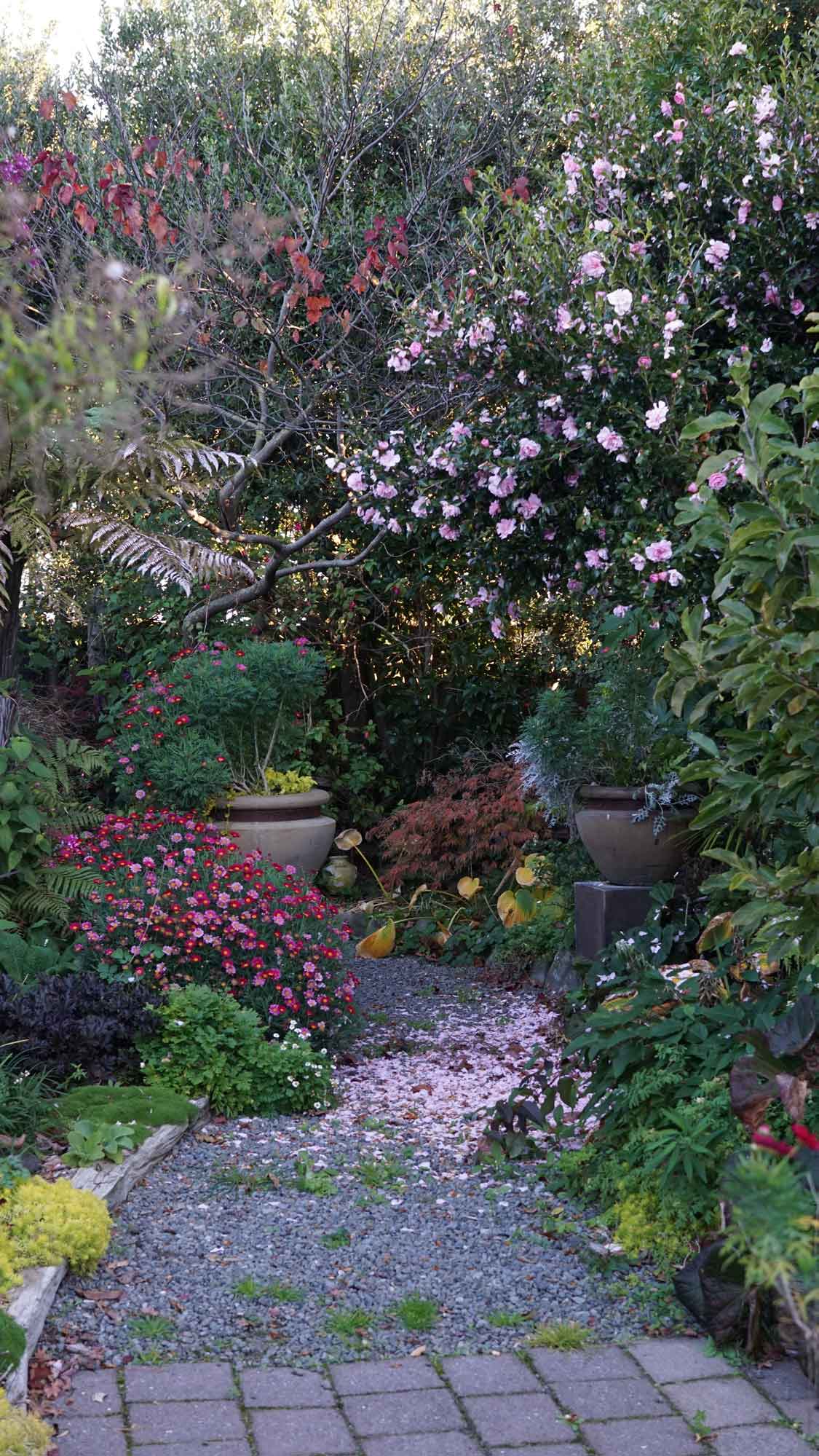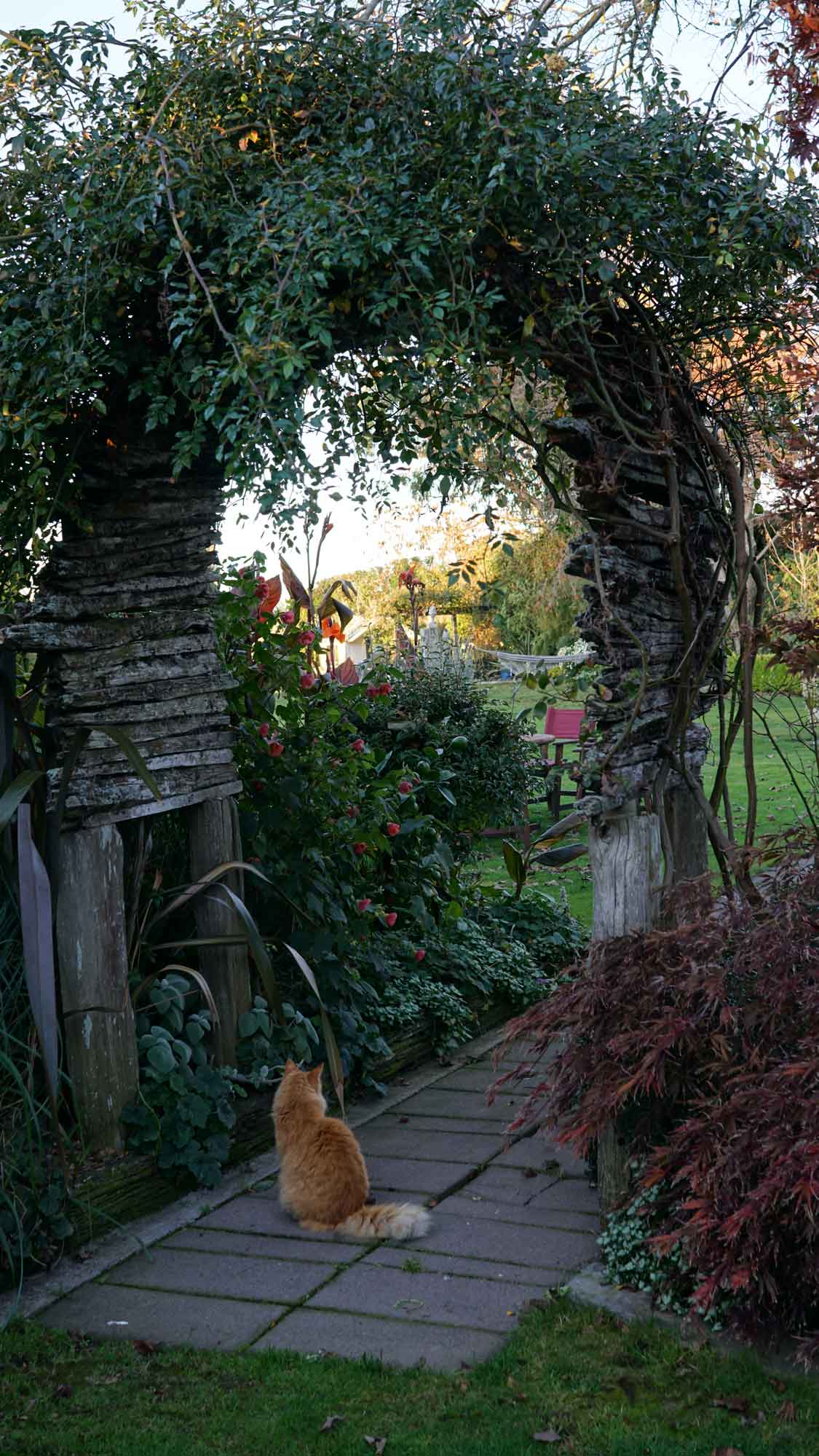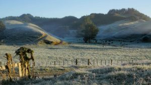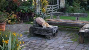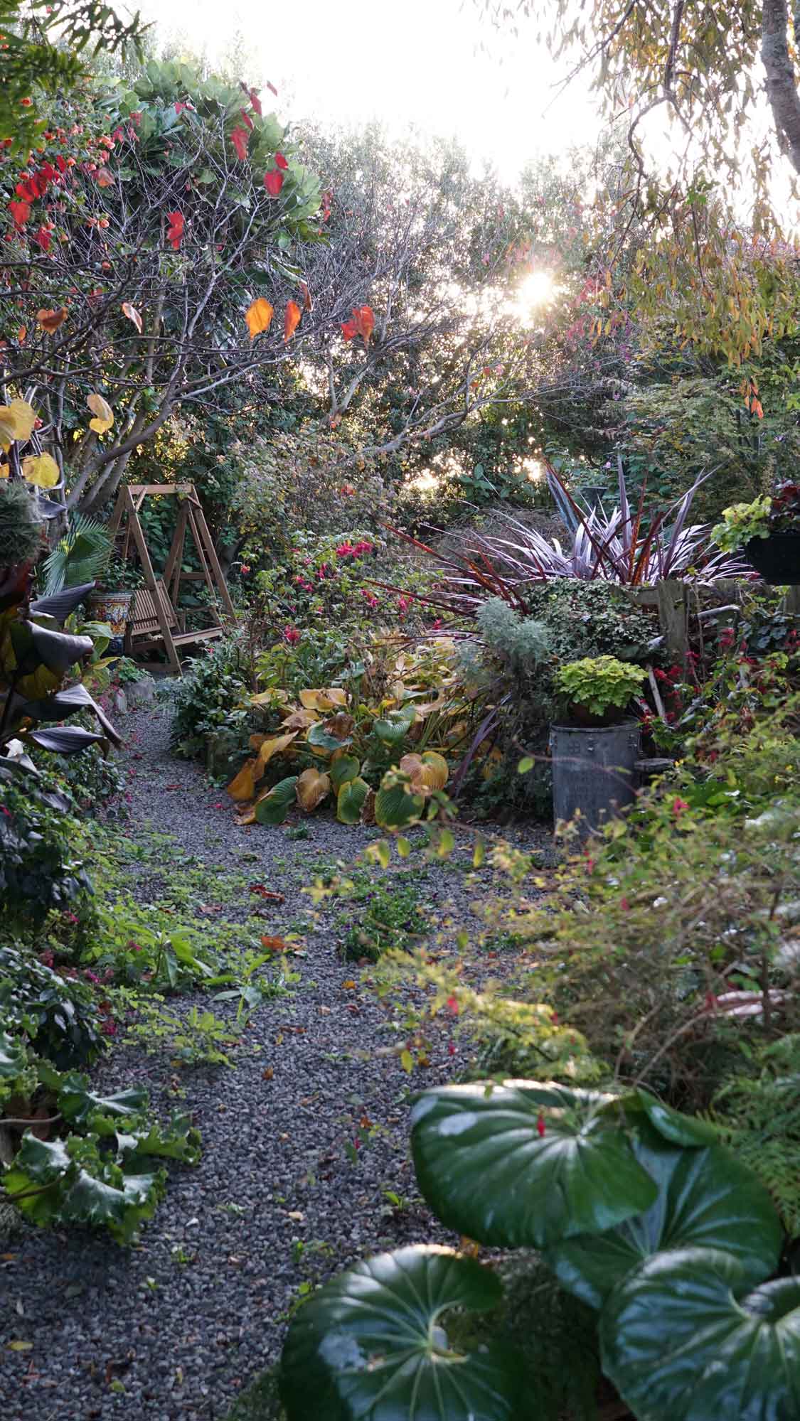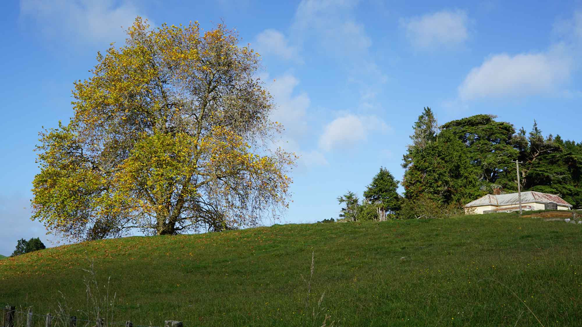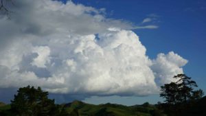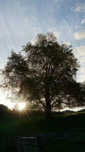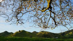 Apparemment, la couche d’ozone au-dessus de la Nouvelle-Zélande est plus fine qu’ailleurs. Le mauvais côté, c’est que le taux de cancers de la peau est élevé ; le bon côté, c’est que la lumière est magnifique, et la chaleur du soleil très forte. Même lorsque le matin était glacial et les collines toutes embrumées, à partir du moment où le soleil sortait, le ciel s’éclaircissait et on n’avait plus froid 😊 . Par contre, les jours de pluie diluvienne, on empilait les vestes. Durant ces deux mois, on a eu le temps de voir le grand érable qui jouxte la maison passer de vert à pourpre, avec toutes les nuances de jaune et orange en chemin, c’est beau ! 🙂
