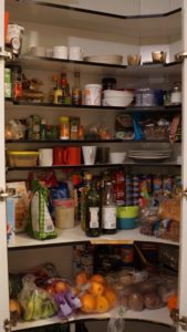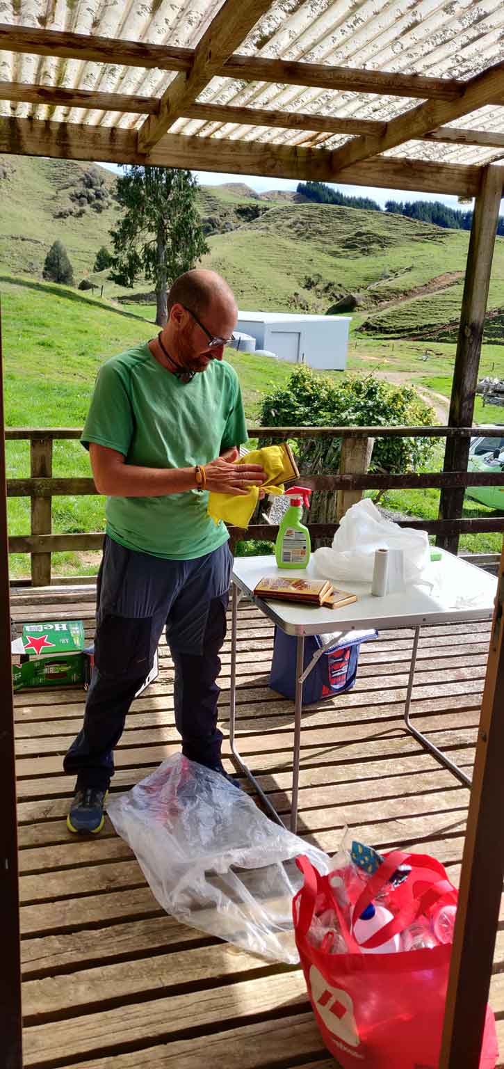 Les courses sont un peu la sortie exceptionnelle : une fois toutes les deux semaines, à quarante minutes de route. C’est un peu stressant de ne pas savoir comment la crise va influer le rapport aux étrangers, mais on s’est inquiétés pour rien, les néo-zélandais sont toujours aussi adorables. On revient avec deux caddies pour tenir jusqu’aux deux semaines suivantes, et on nettoie tout avant de laisser Camille faire son tetris dans le placard et le frigo.