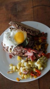 La grande nouveauté, c’est aussi le petit-déjeuner à l’espagnole que Juan et Sara nous font découvrir : toast, ail, huile, avocat écrasé, fromage, tomate, jambon et poivre, une tuerie ! Notre nouveau rituel officiel de début de journée. 😁