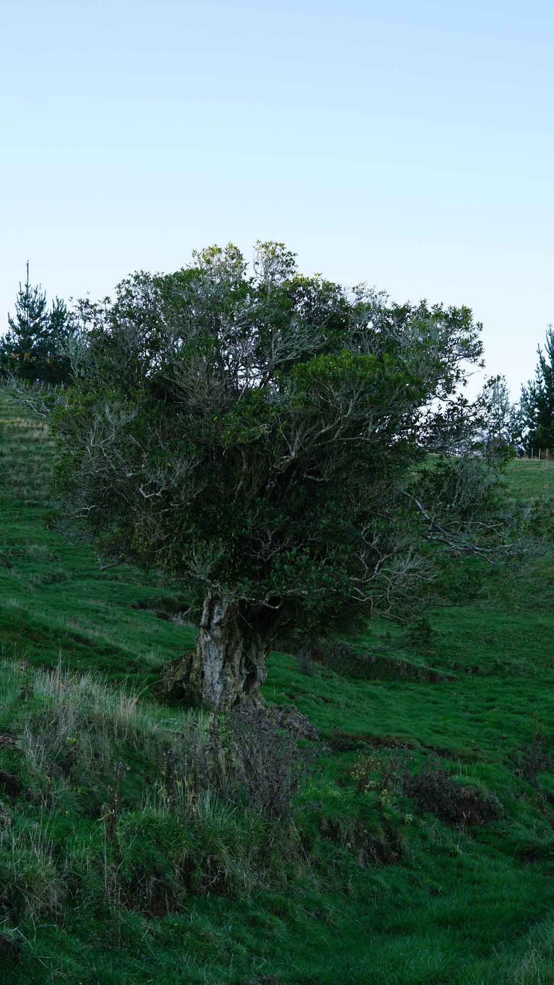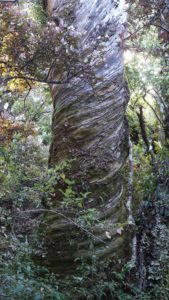 Une autre balade chouette montait à travers les collines au nord, avec juste avant de rentrer dans « la forêt de John » trois très beaux arbres qui ressemblaient à des oliviers, avec un tronc noueux en spirale. Camille en a adopté un, au pied duquel elle a chanté un de ses chants du monde en gaélique.