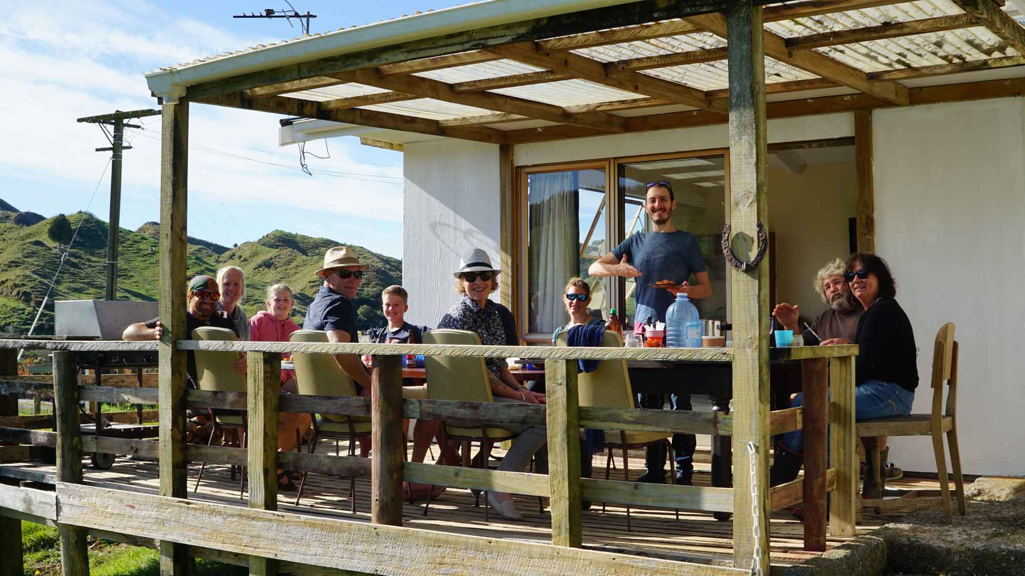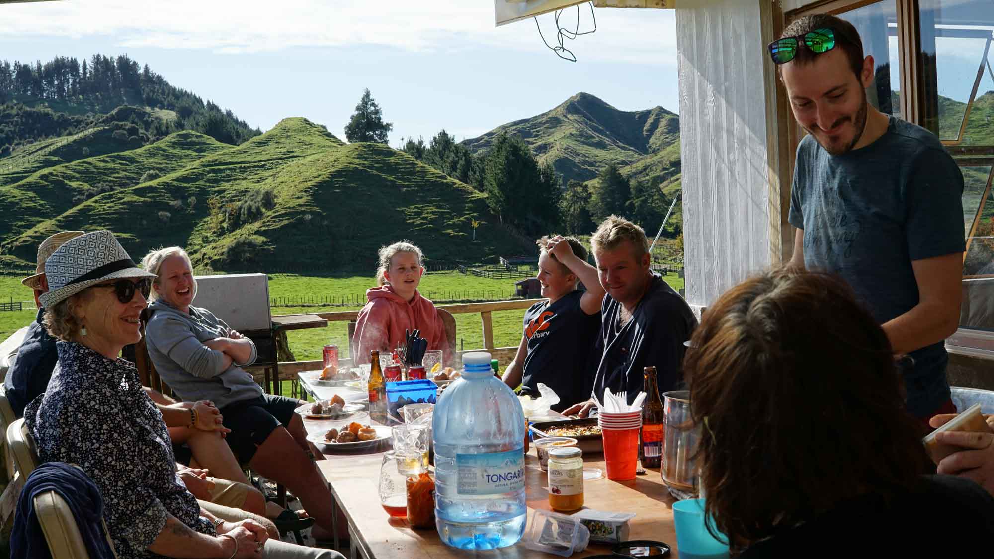 Le 11 mai, un mois et demi après notre arrivée, la Nouvelle-Zélande qui avait réagi très vite au virus a levé le confinement. On a pu en profiter pour voir nos voisins, davantage que pour leur donner des tartes aux pommes entre deux portes pour respecter la « bubble » — la bulle que les néo-zélandais devaient maintenir autour de leur famille la plus proche pour limiter la propagation du virus. Le 15 mai, tout excités, on est allés dîner chez Vik et Sally (le chasseur de sanglier, adorable, avec une stature de viking), puis deux jours plus tard, on a fêté les 29 ans de Romain avec un déjeuner en terrasse à douze avec les trois familles des voisins. 😀