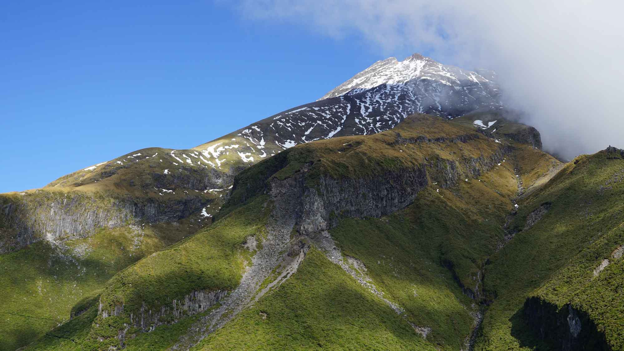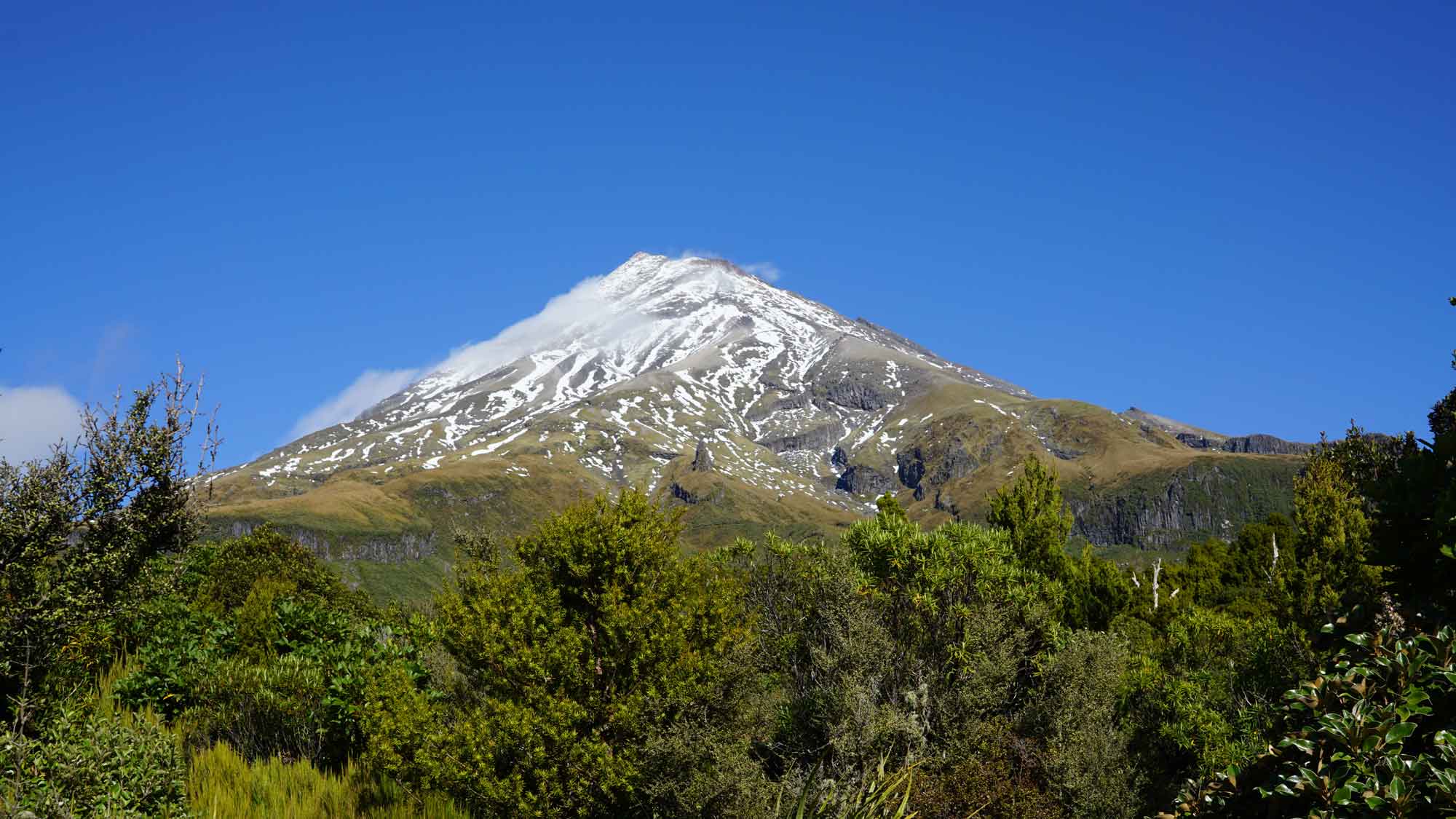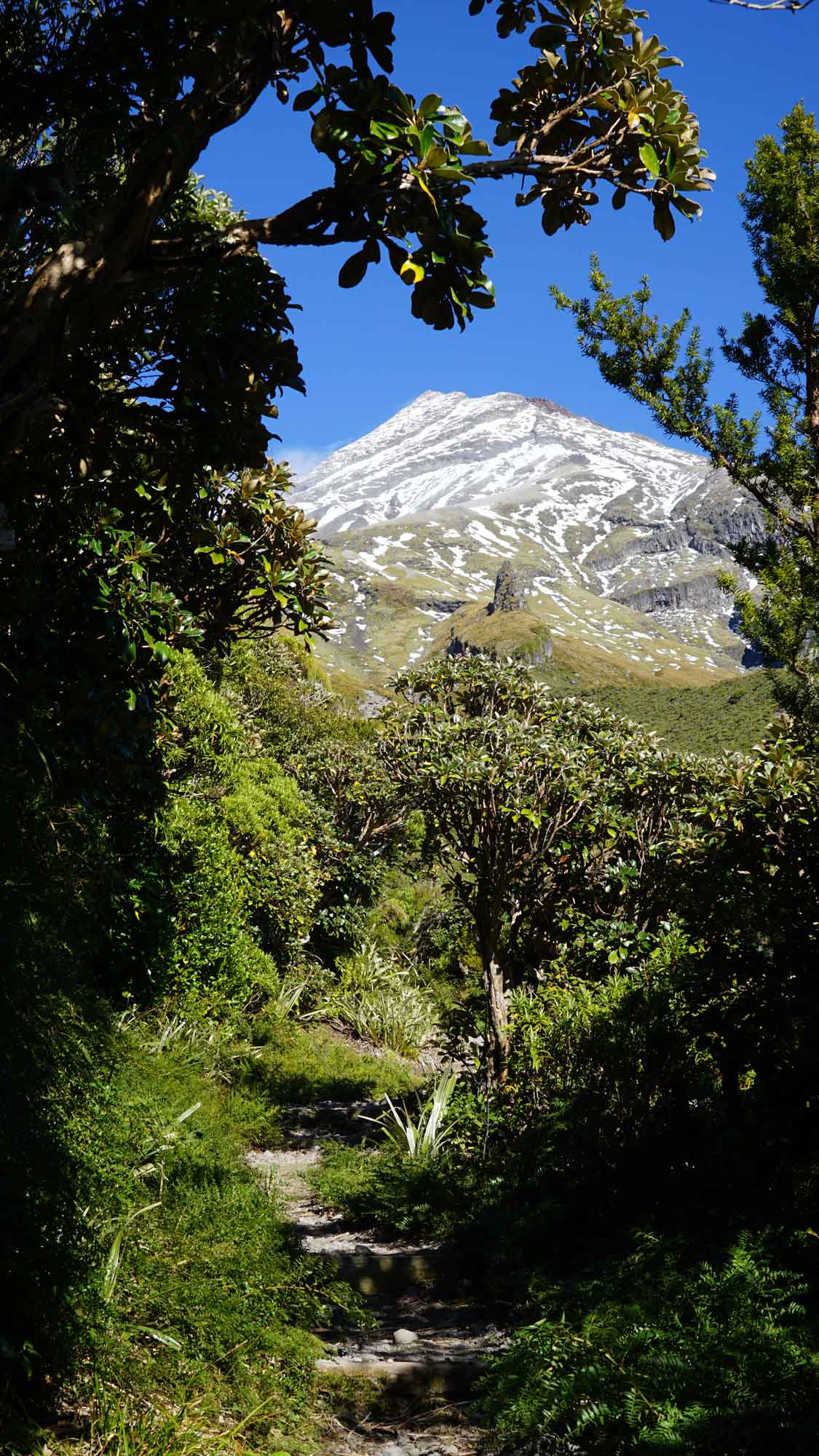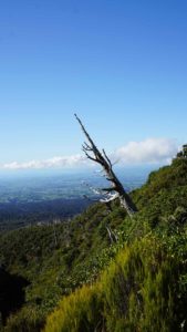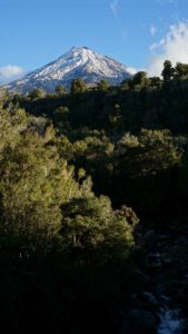 On a aussi pu aller randonner sur le magnifique Taranaki, au sommet enneigé par les dernières semaines. On n’a pas atteint le niveau de la neige, mais il faisait frais avec le vent ! C’était assez magique de randonner en forêt puis en altitude avec vue sur la mer, qui longe la montagne. Il y avait des arbres blancs sortant de la forêt qui paraissaient magiques, mais dont nous avons appris par la suite qu’ils mouraient d’une maladie préhistorique qui a refait surface il y a quelques années 😕. La balade réservait de très beaux paysages en tout cas !