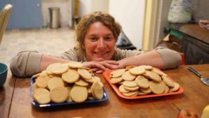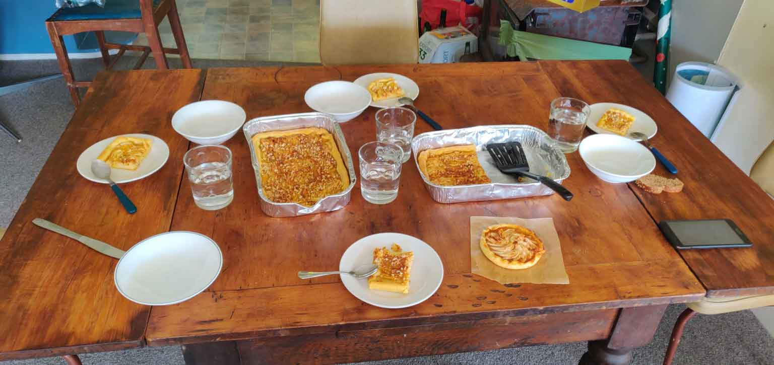 Et, aussi… On cuisine. Beaucoup. Il faut dire qu’après trois mois et demi en Asie où il était physiquement impossible de se préparer à manger, nous voilà avec une cuisine bien aménagée et du temps. Jackpot ! Romain se fait plaisir sur les ragoûts, currys thaï, burgers maison et légumes cuisinés, et Camille élargit son catalogue de gâteaux, tartes et sablés. On reprend à bonne vitesse le poids perdu en Asie 🤣 . Il faut dire que John et les voisins nous gâtent avec de la viande délicieuse de leurs fermes, assez de pommes pour dix tartes et des kilos de compote et des mûres sauvages, ce serait un crime de ne pas en profiter.