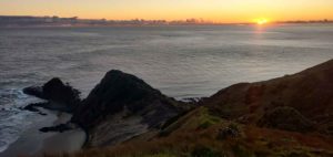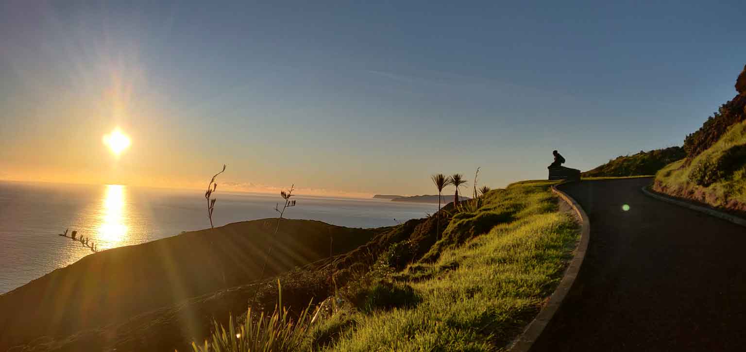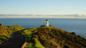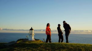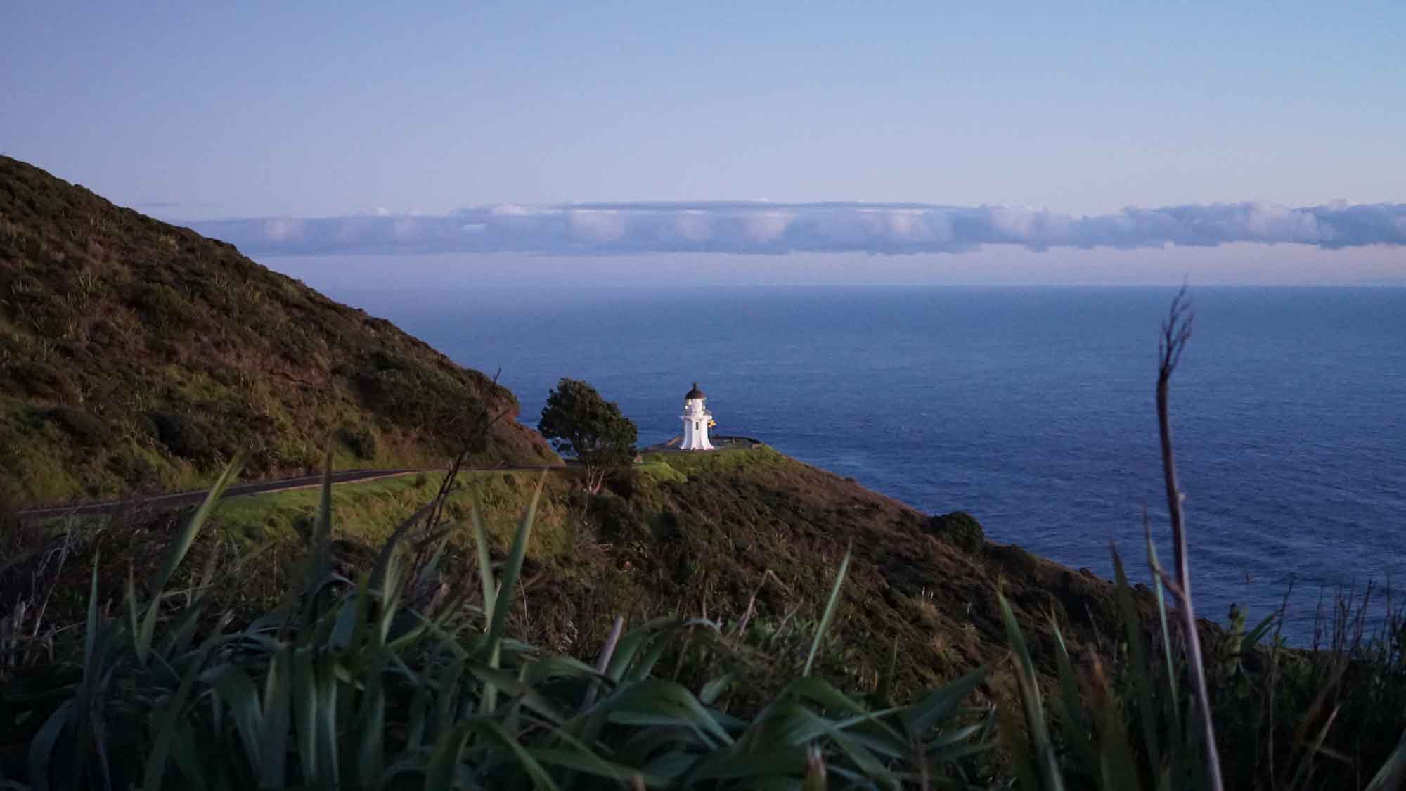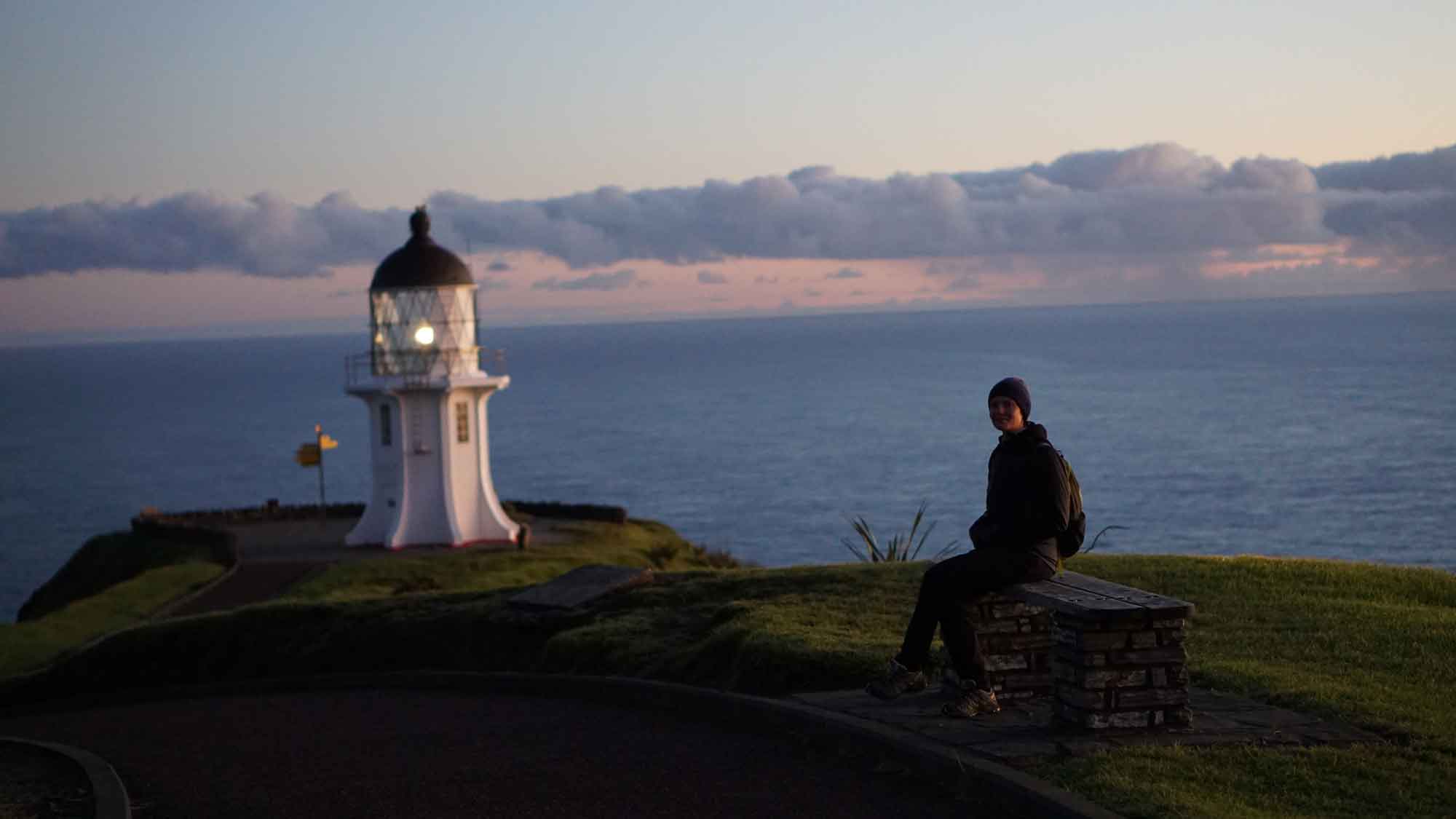 Départ le vendredi soir à 20h avec glacière, matelas, et plaid. On roule de nuit jusqu’au Cap Reinga à l’extrême nord de la Nouvelle-Zélande, tout en discutant de l’enfance de Corneli en Afrique du Sud (pendant que Romain, inquiet du manque de sommeil, pionce à l’arrière 😉), et on dort dans la voiture sur le parking, de 2h à… 6h30 quand le réveil sonne pour le lever du soleil ! Ça pique.
