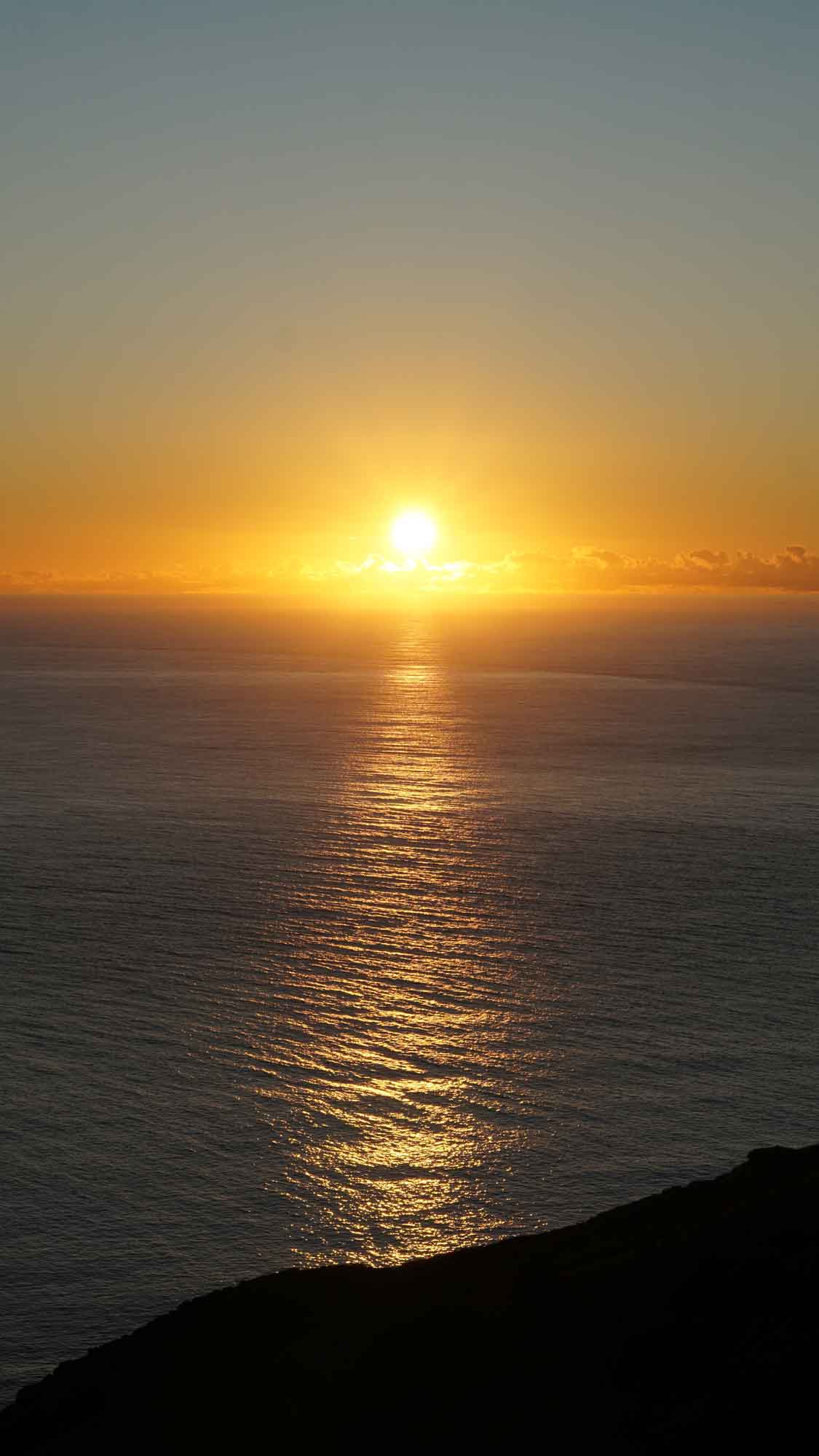 On s’installe donc sous le phare ; au début on est tout seuls, puis quelques courageux qui se sont aussi levés tôt nous rejoignent. Petit à petit, l’horizon s’embrase au-dessus de la mer à perte de vue. On est juste quelques-uns, c’est génial.