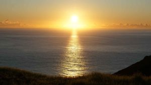Quand l’heure arrive, c’est magique : l’or et orangé du soleil et de la pierre qu’il éclaire, le bleu de la mer et du ciel, le vert éclatant de l’herbe… On se croirait à la fin du monde, ou au début, on ne sait plus trop. Pour Camille, c’est le plus beau paysage qu’elle a vu de toute sa vie. La journée commence bien…