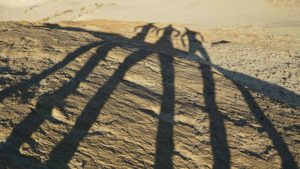 On prend notre temps, puis on remonte doucement le chemin jusqu’à la voiture en prenant des photos ensemble. Les plages au loin, on ne sait pas pourquoi, ont des airs de paysages extra-terrestres.