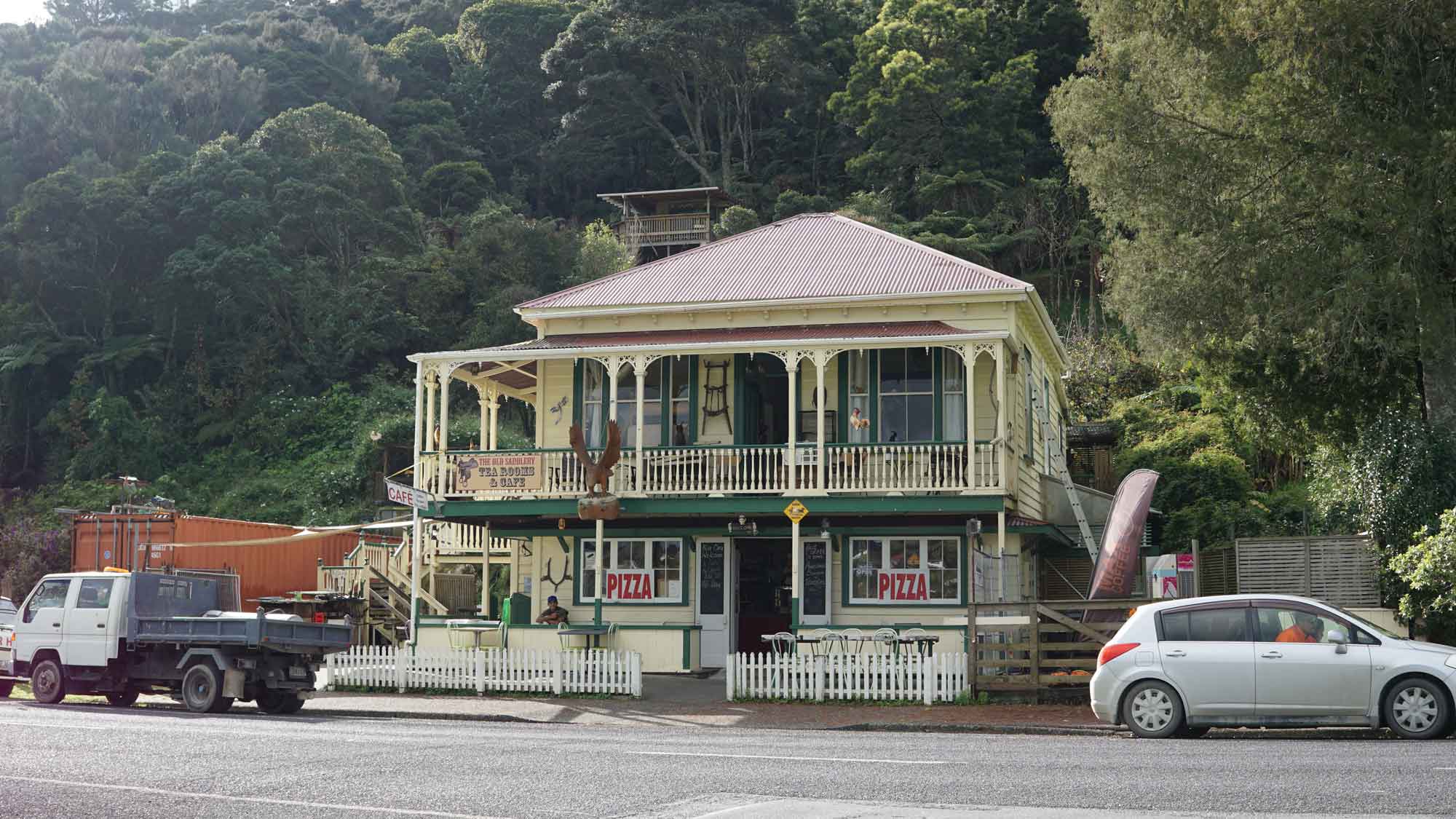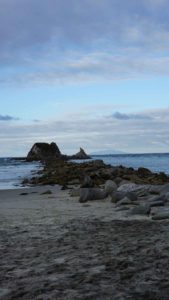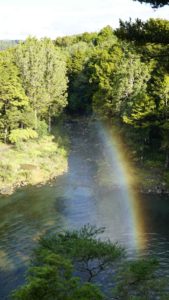 Il commence à faire faim ; Romain qui a fait une très petite nuit s’endort dans la voiture tandis qu’on continue vers le sud, où on manque de s’arrêter dans un petit bistrot de style américain super beau. On passe ensuite à Kerikeri voir les Rainbow Falls, « Cascade à l’arc-en-ciel » et son arc-en-ciel éternel 😃 puis une autre cascade, Haruru Falls (qui avait l’air immense sur les photos mais est en fait plus petite 😝). Et enfin, nos fish’n’chips (décidément notre seule nourriture de tourisme néo-zélandais) bien mérités en bord de mer, malgré un temps un peu menaçant.