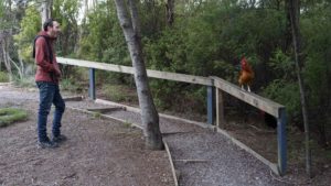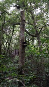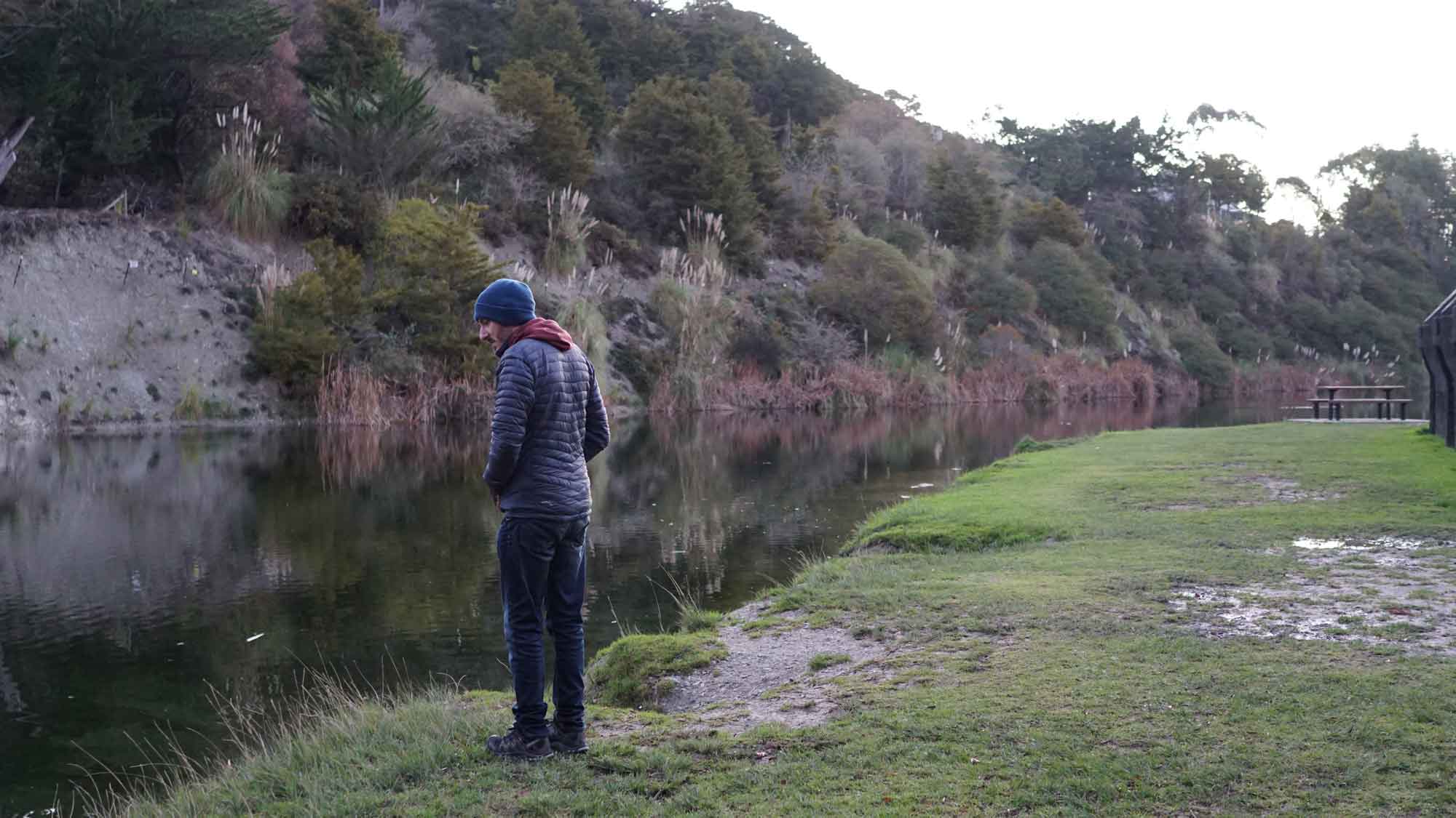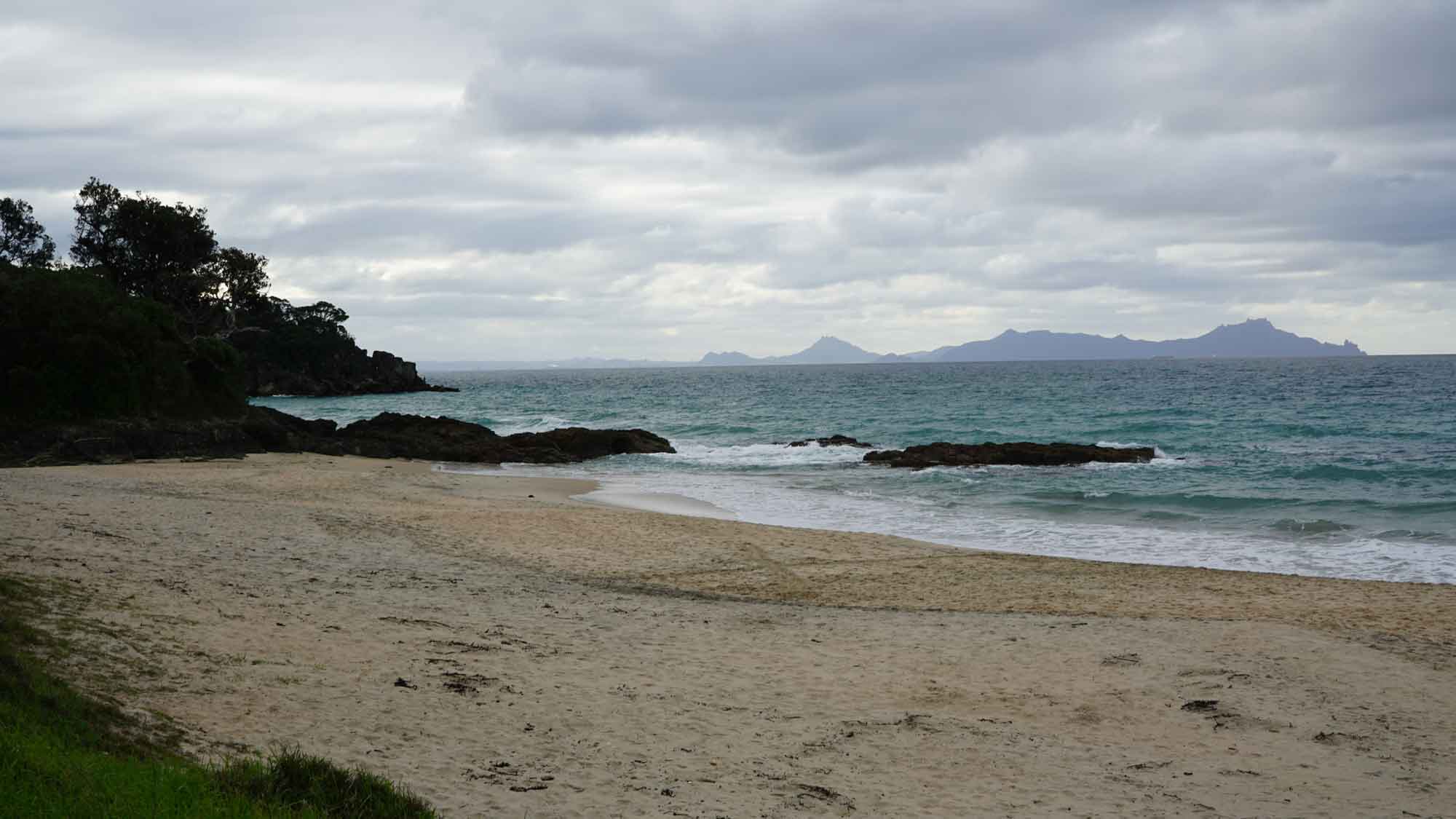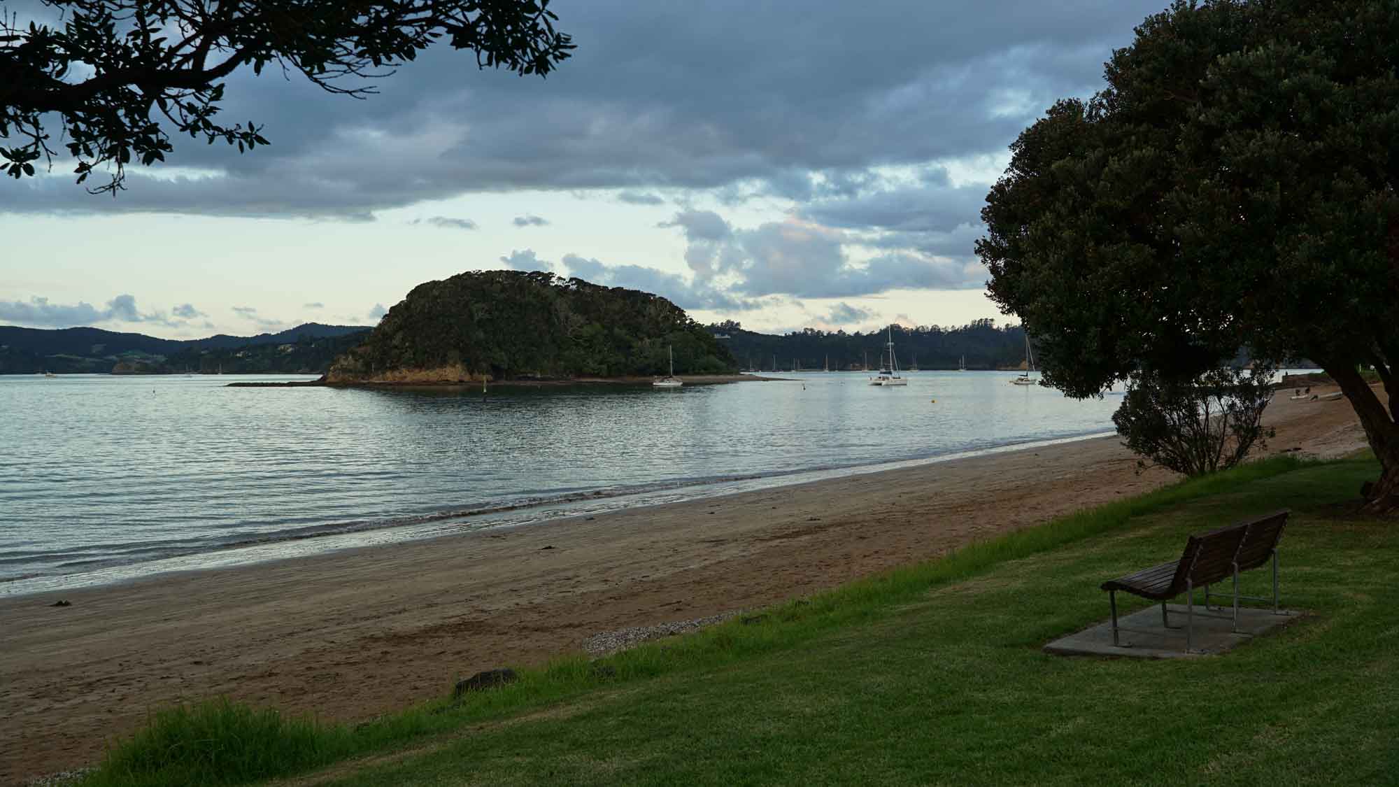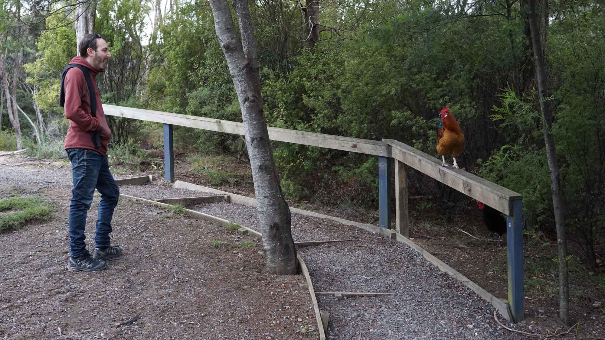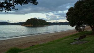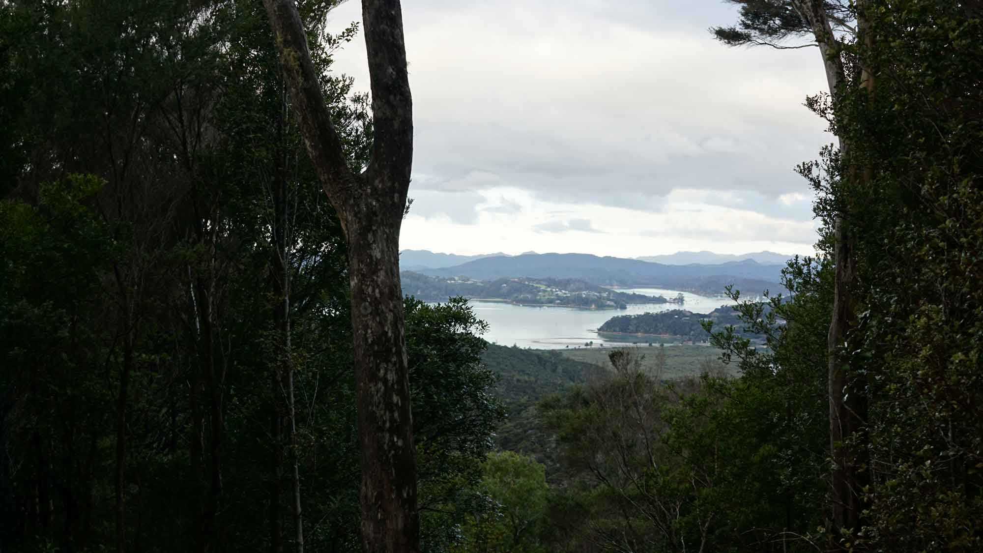 Toutes ces péripéties ont à nouveau assommé Romain qui s’endort comme une masse à l’arrière de la voiture, tandis que Corneli et Camille font une petite marche dans une forêt centenaire pour aller voir la vue sur la Bay of Islands (Baie des îles, très touristique en été, mais déserte ce jour-là), et au passage, admirent un petit fantail très occupé à faire sa toilette dans un ruisseau.